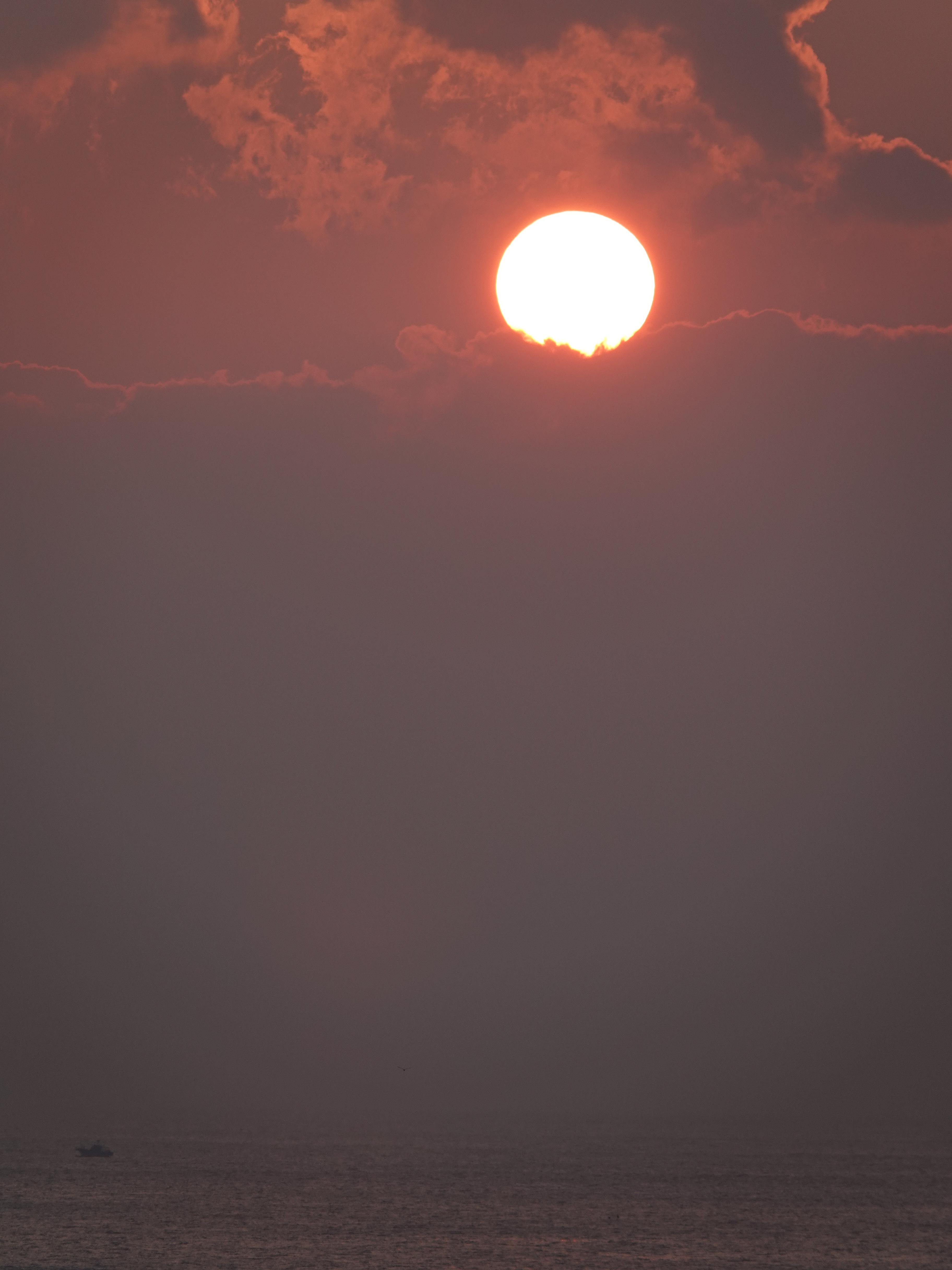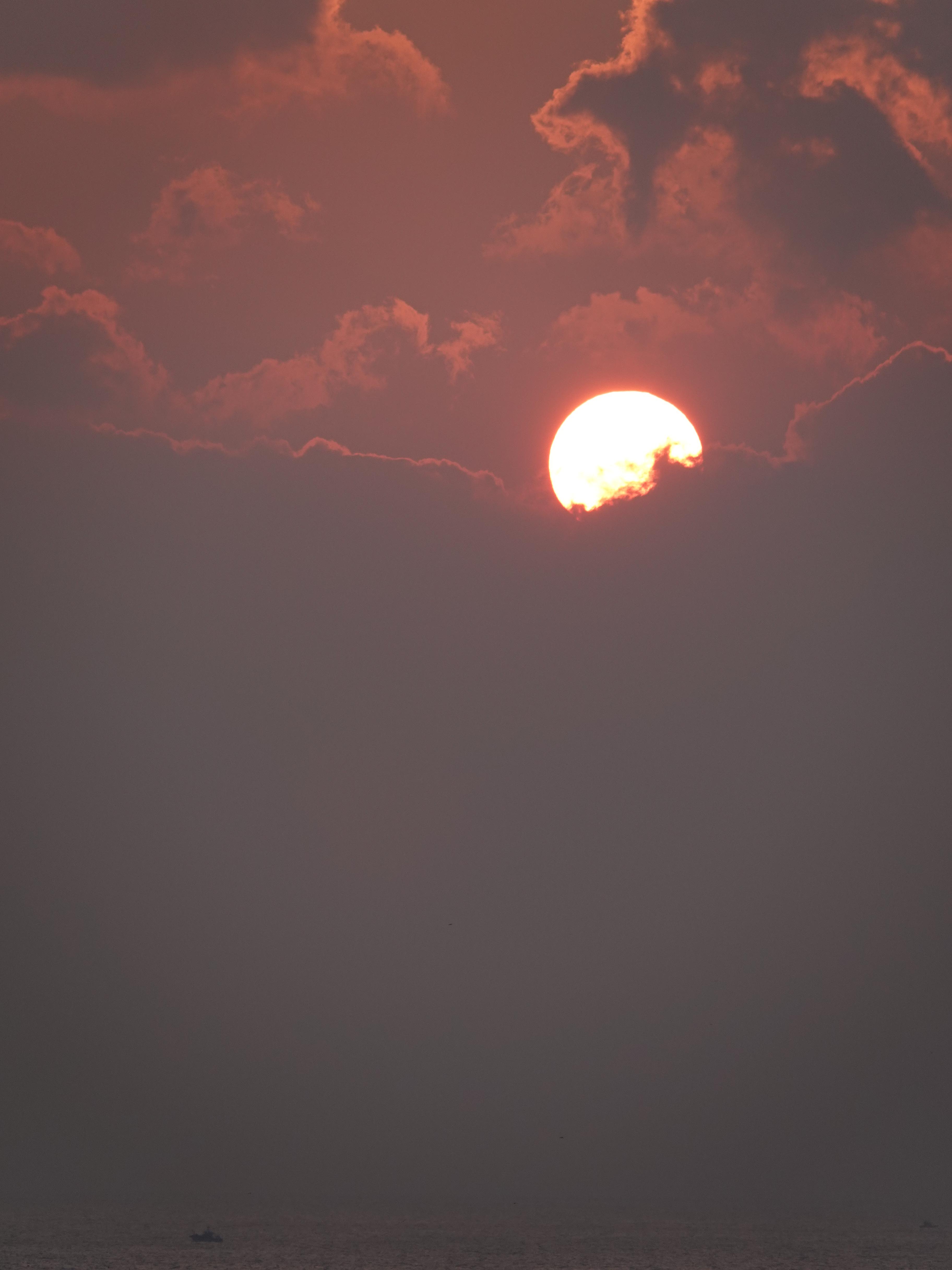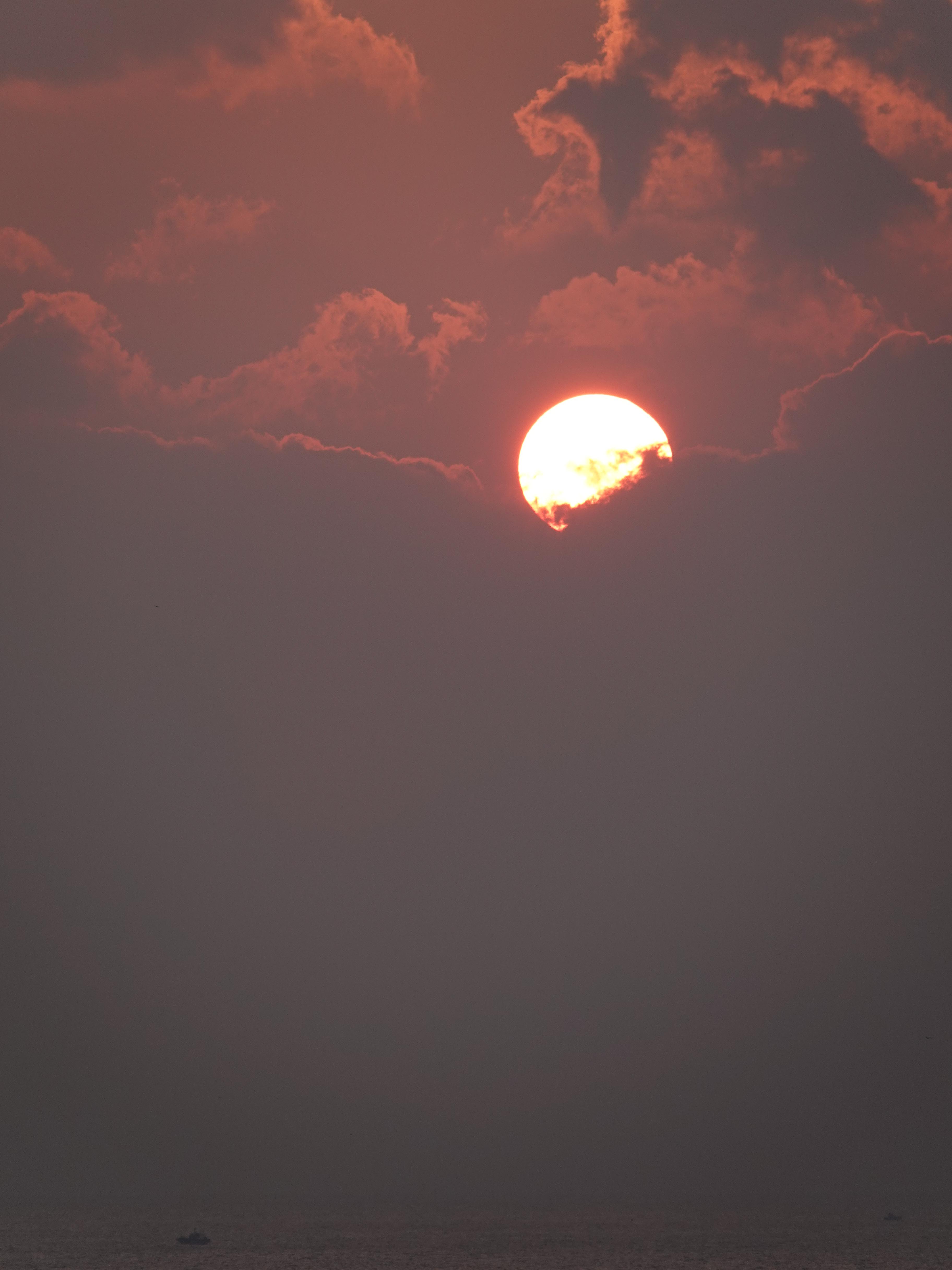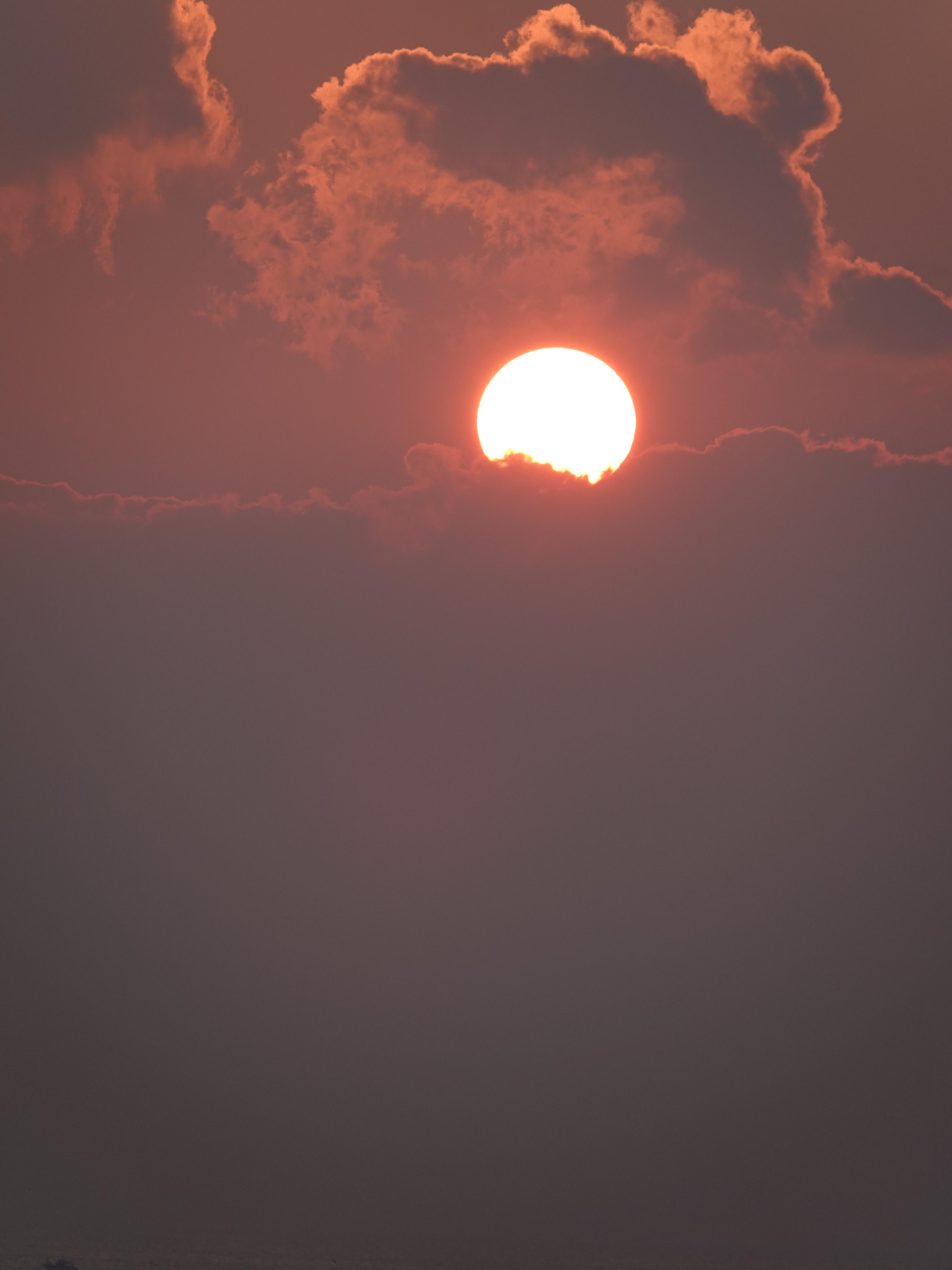 * 수평선 위에 저렇게 구름과 깨스층이 많이 있어 일출 시간 보다 약 15분 늦게 얼굴을 내 밀기 시작 하였습니다