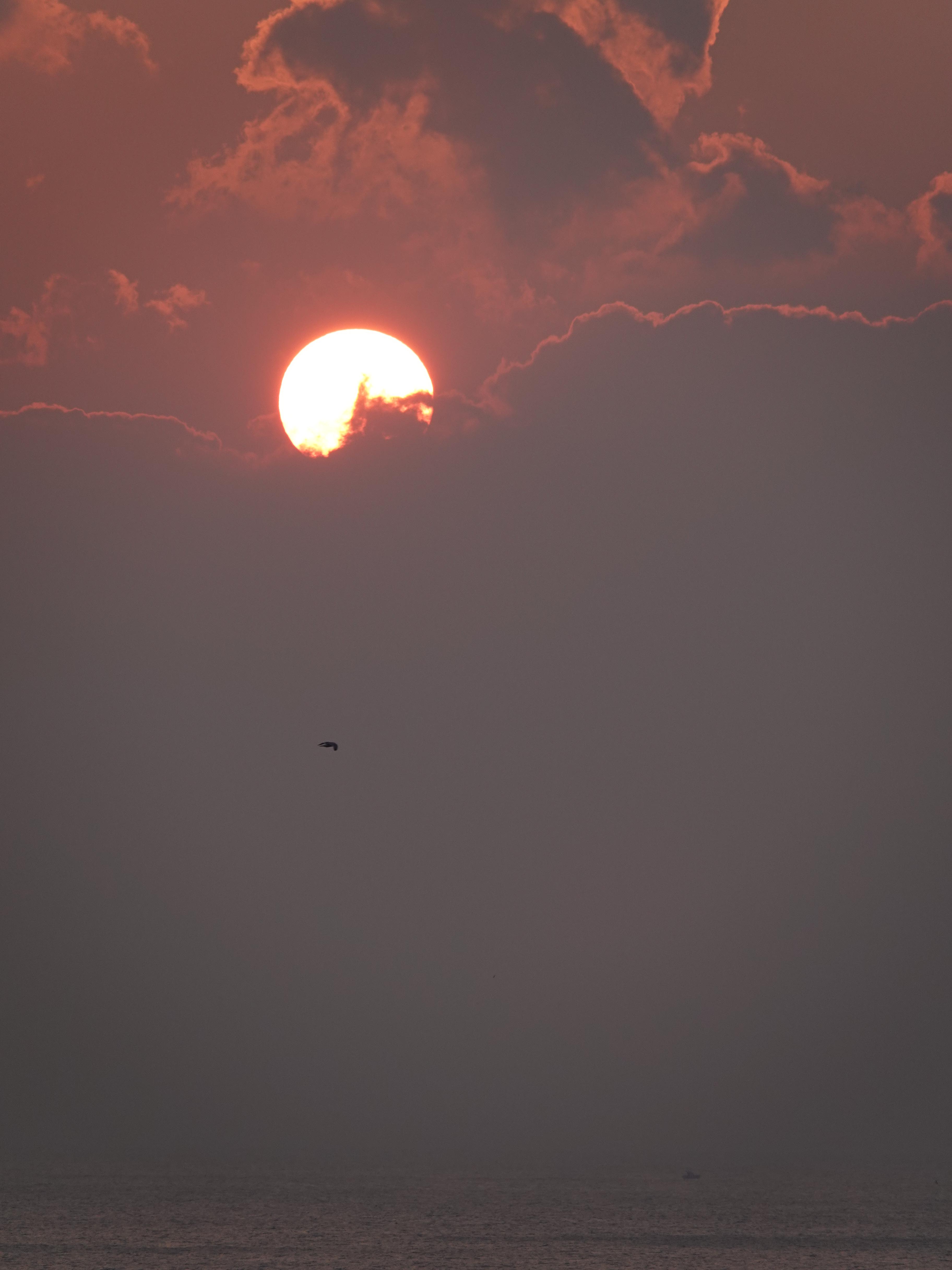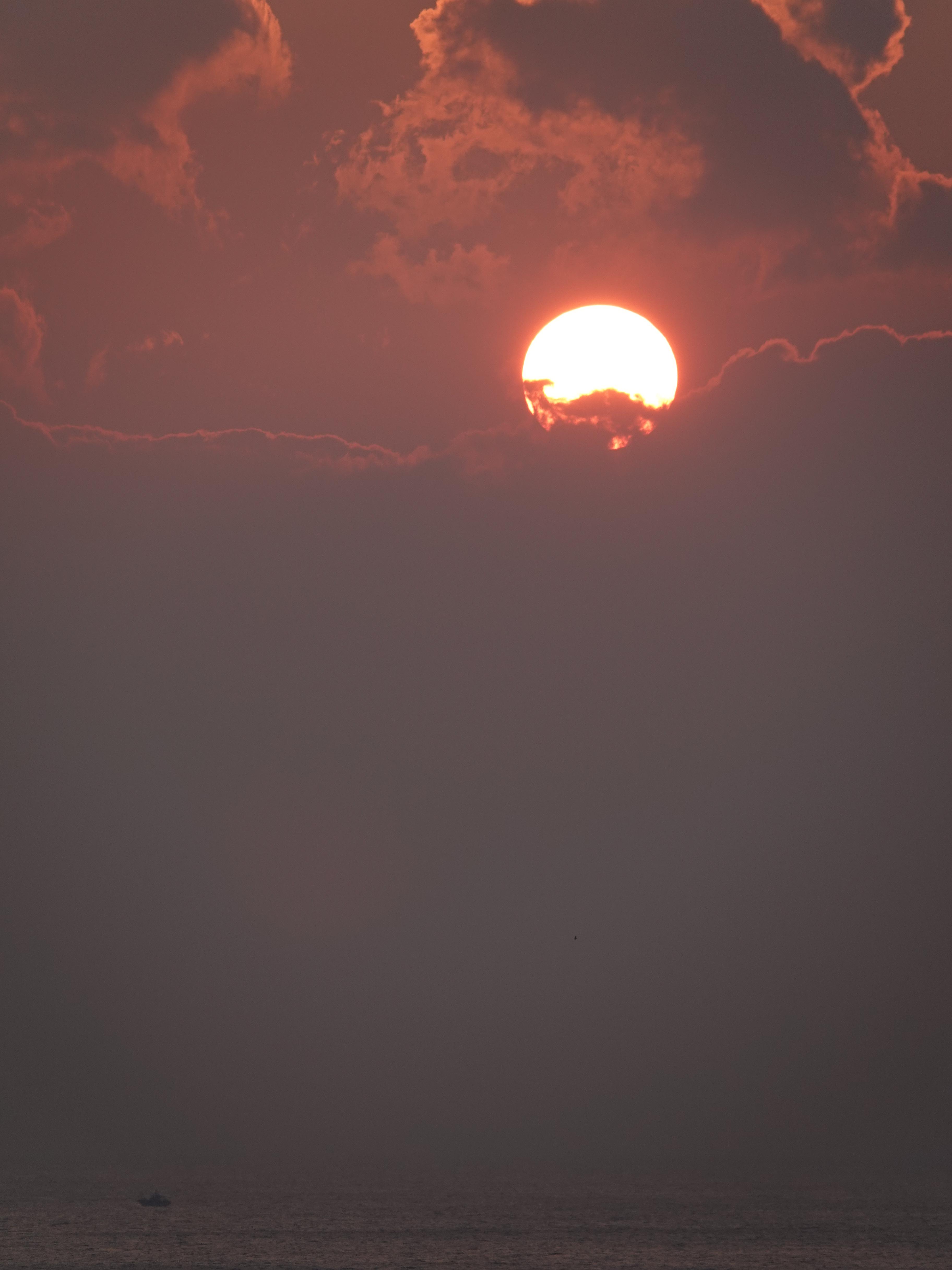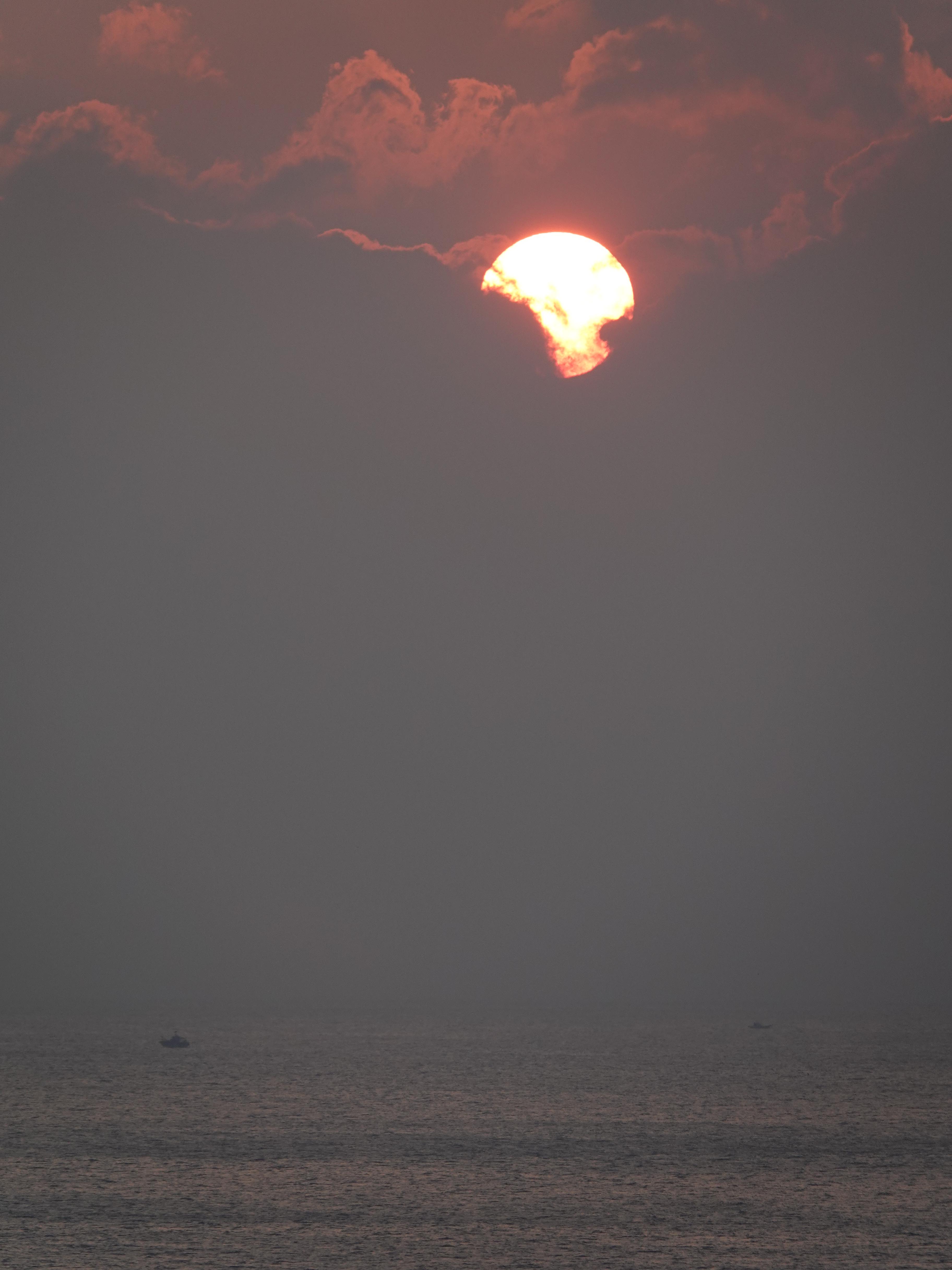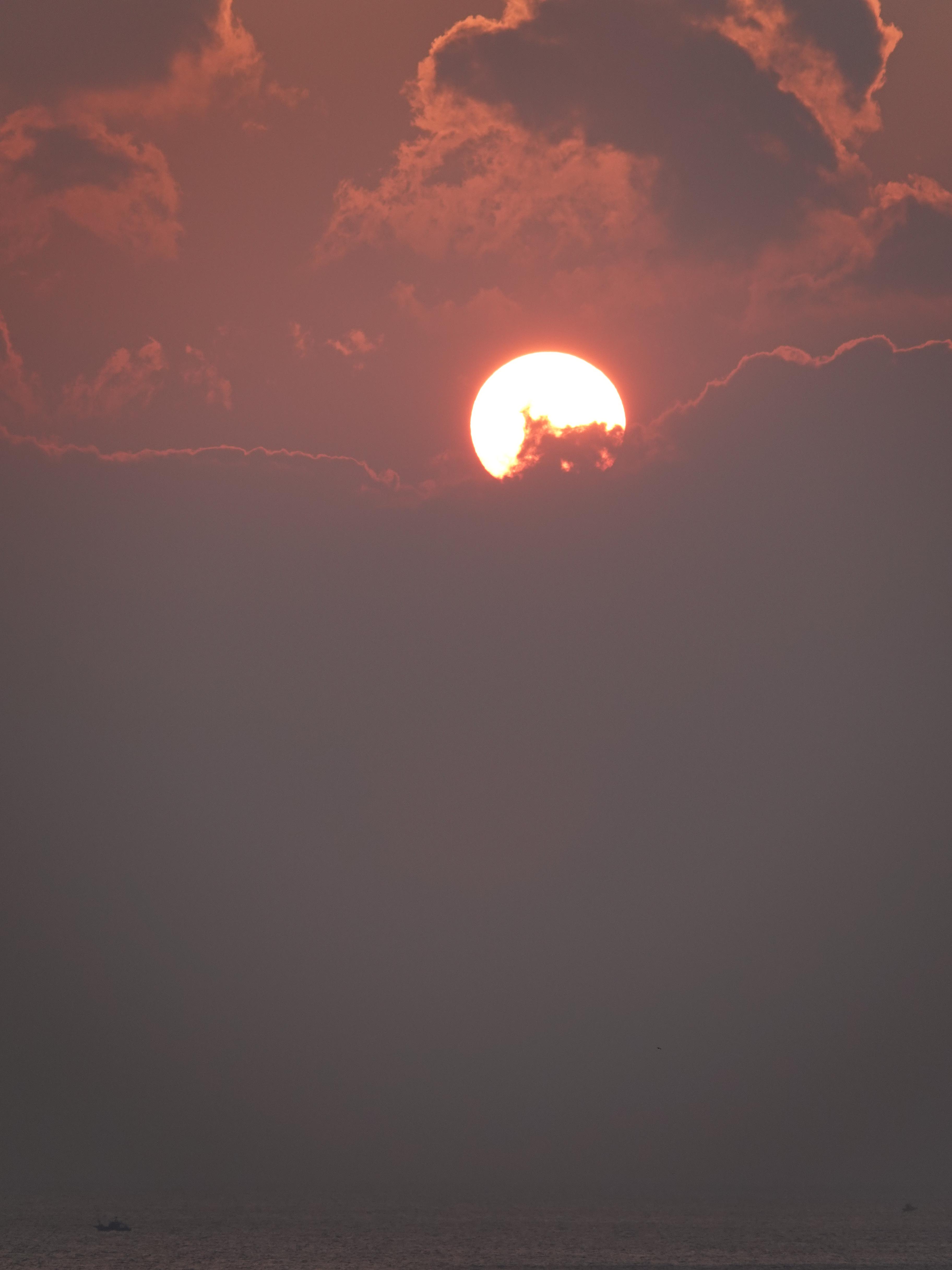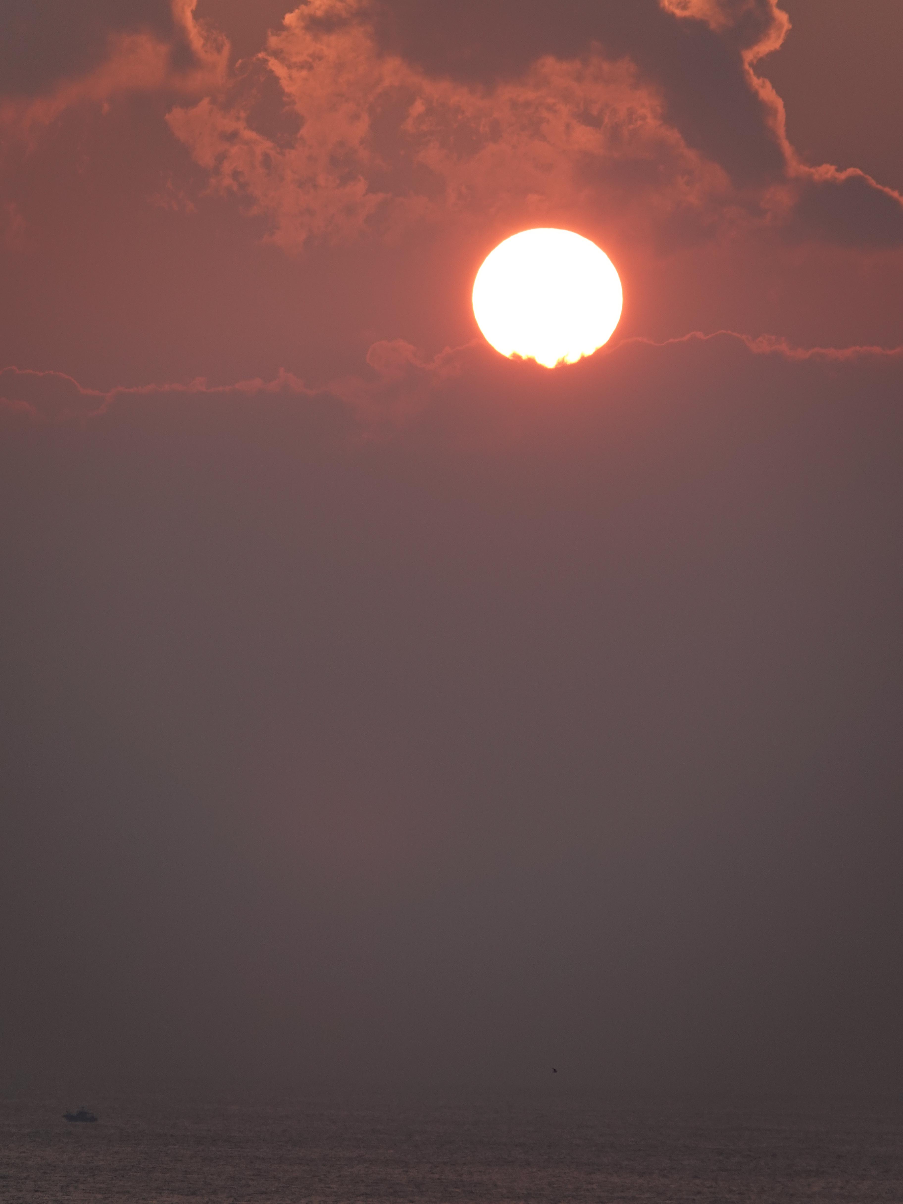 * 수평선 위에 저렇게 구름과 깨스층이 많이 있어 일출 시간 보다 약 15분 늦게 얼굴을 내 밀기 시작 하였습니다