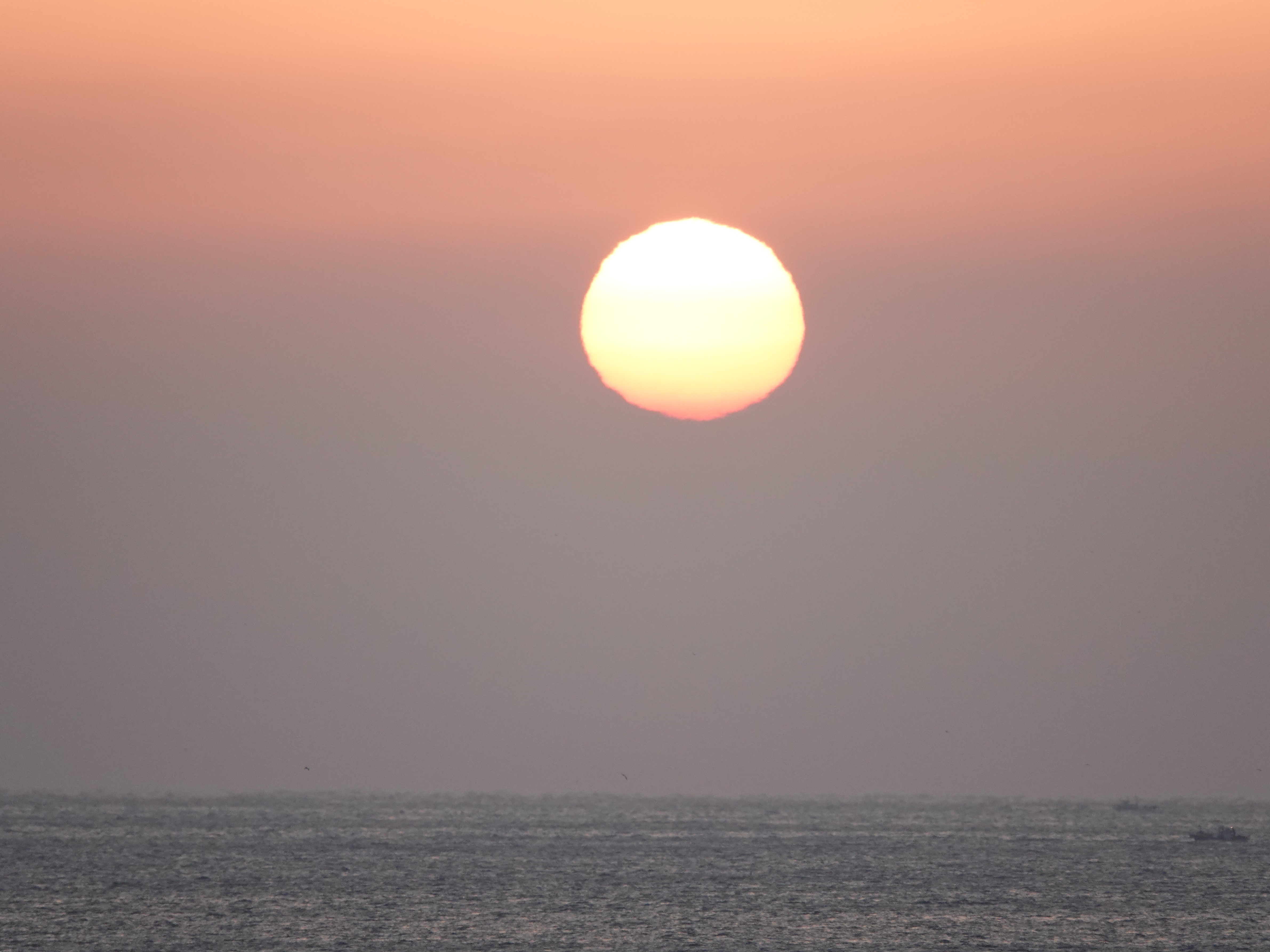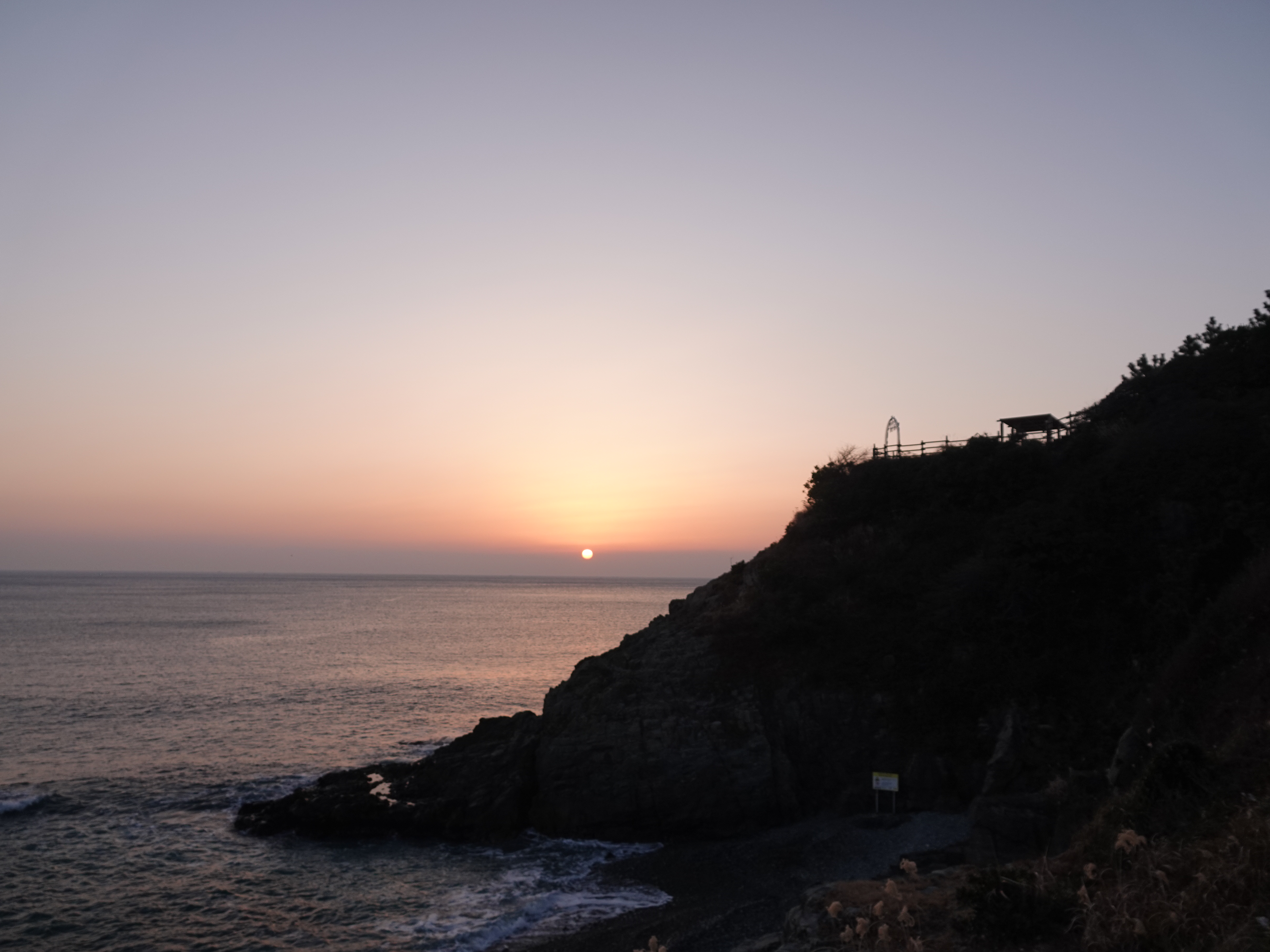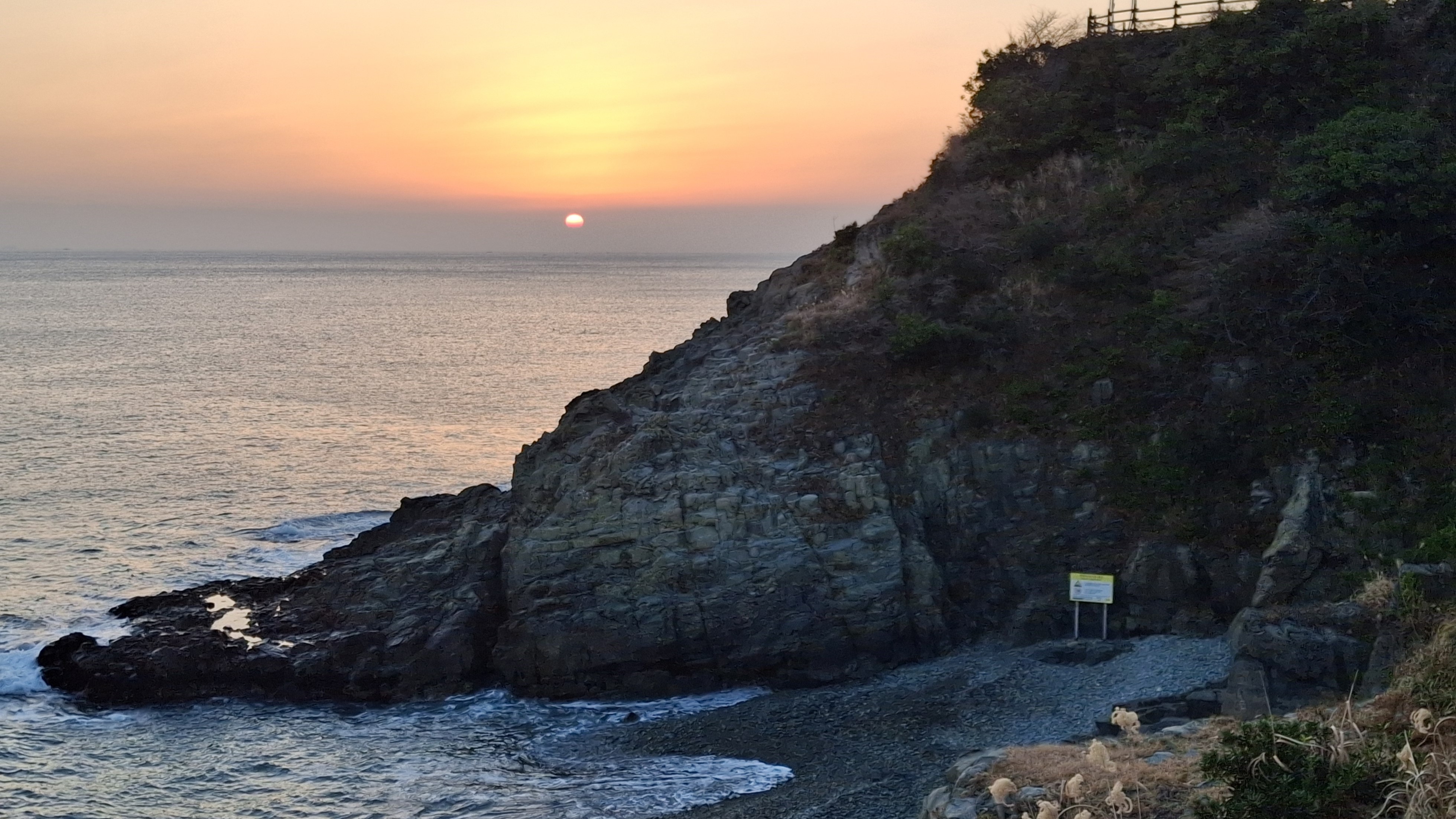 * 오늘은 날씨는 포근한데 수평선위에 깨스층과 미세먼지가 많이 보이는 날의 아침 일출 입니다
