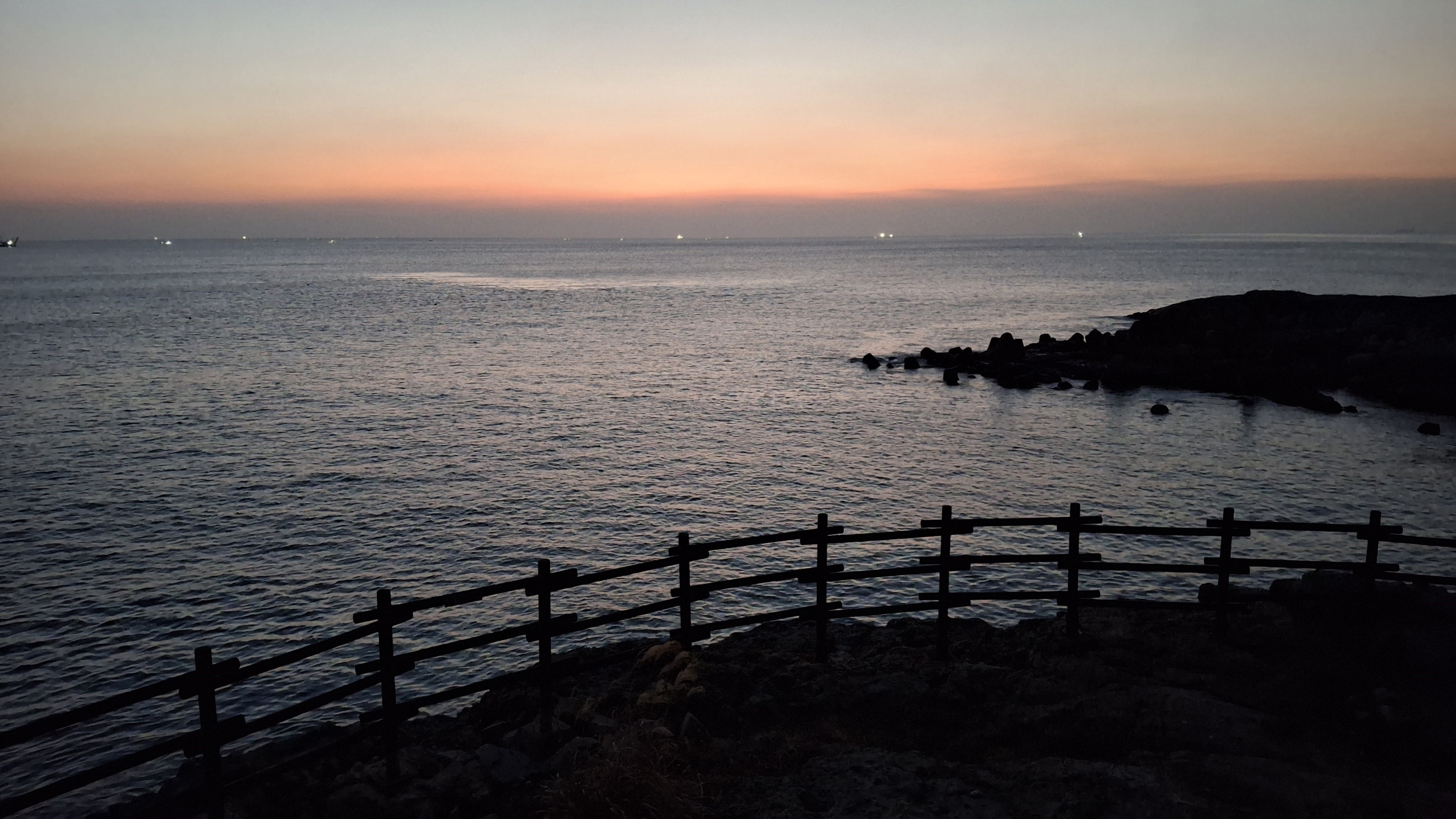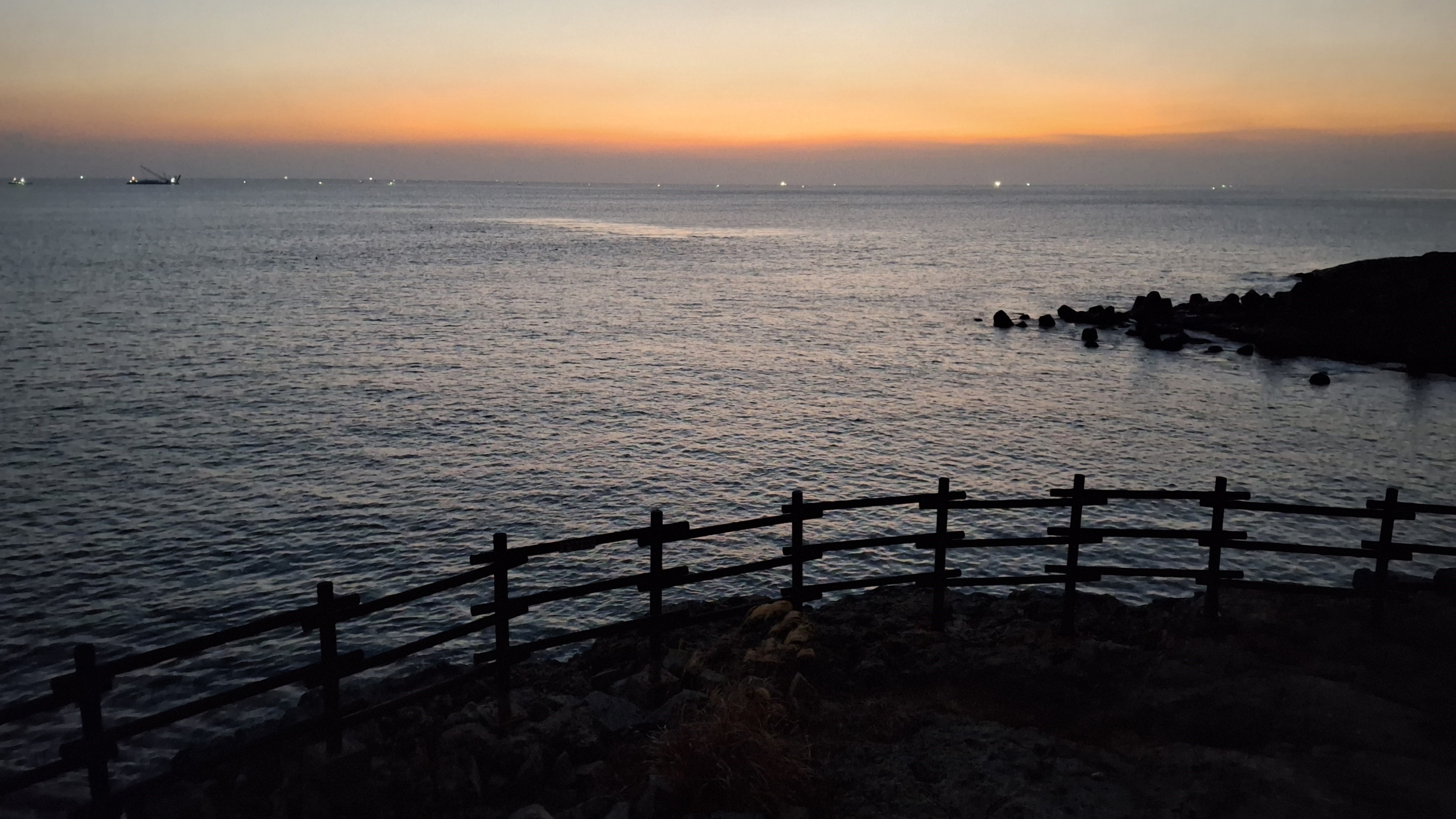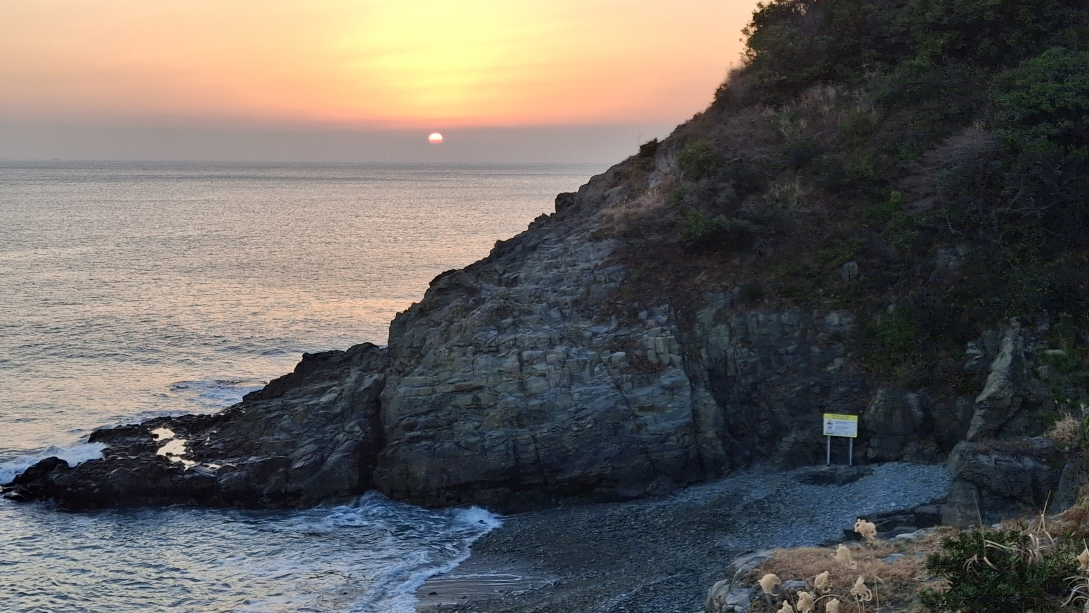 * 오늘은 날씨는 포근한데 수평선위에 깨스층과 미세먼지가 많이 보이는 날의 아침 일출 입니다