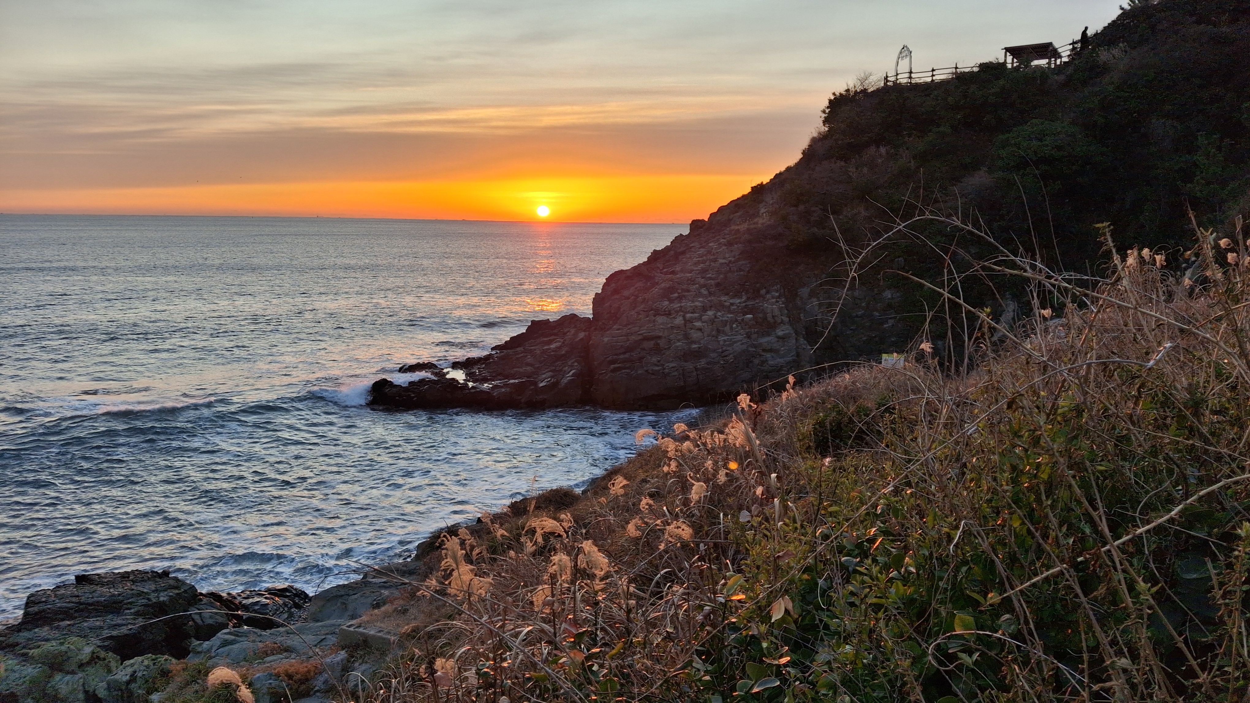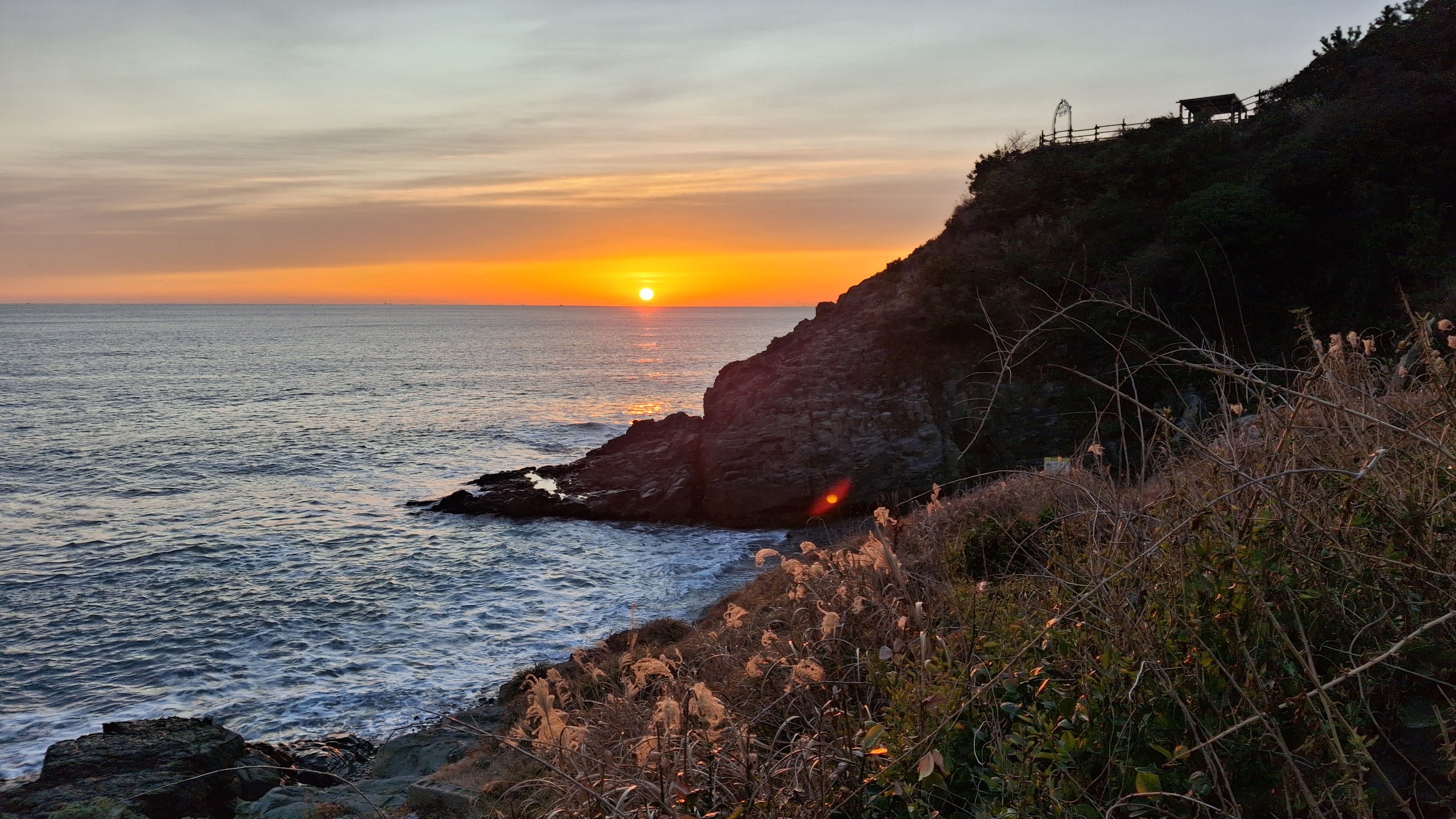 * 구름이 수평선에서 조금 멀리 형성되어 예쁜 일출이 일어 났습니다