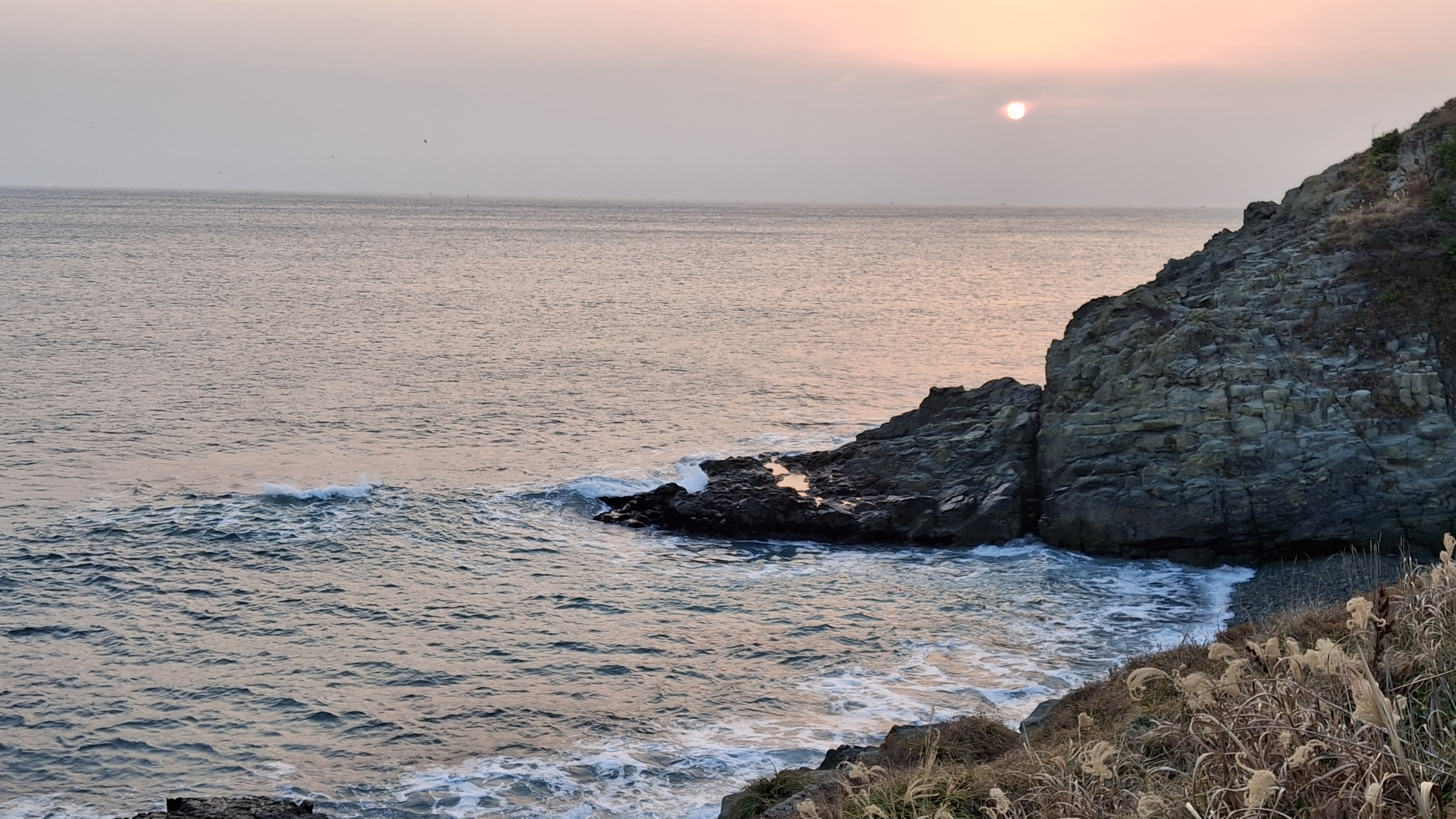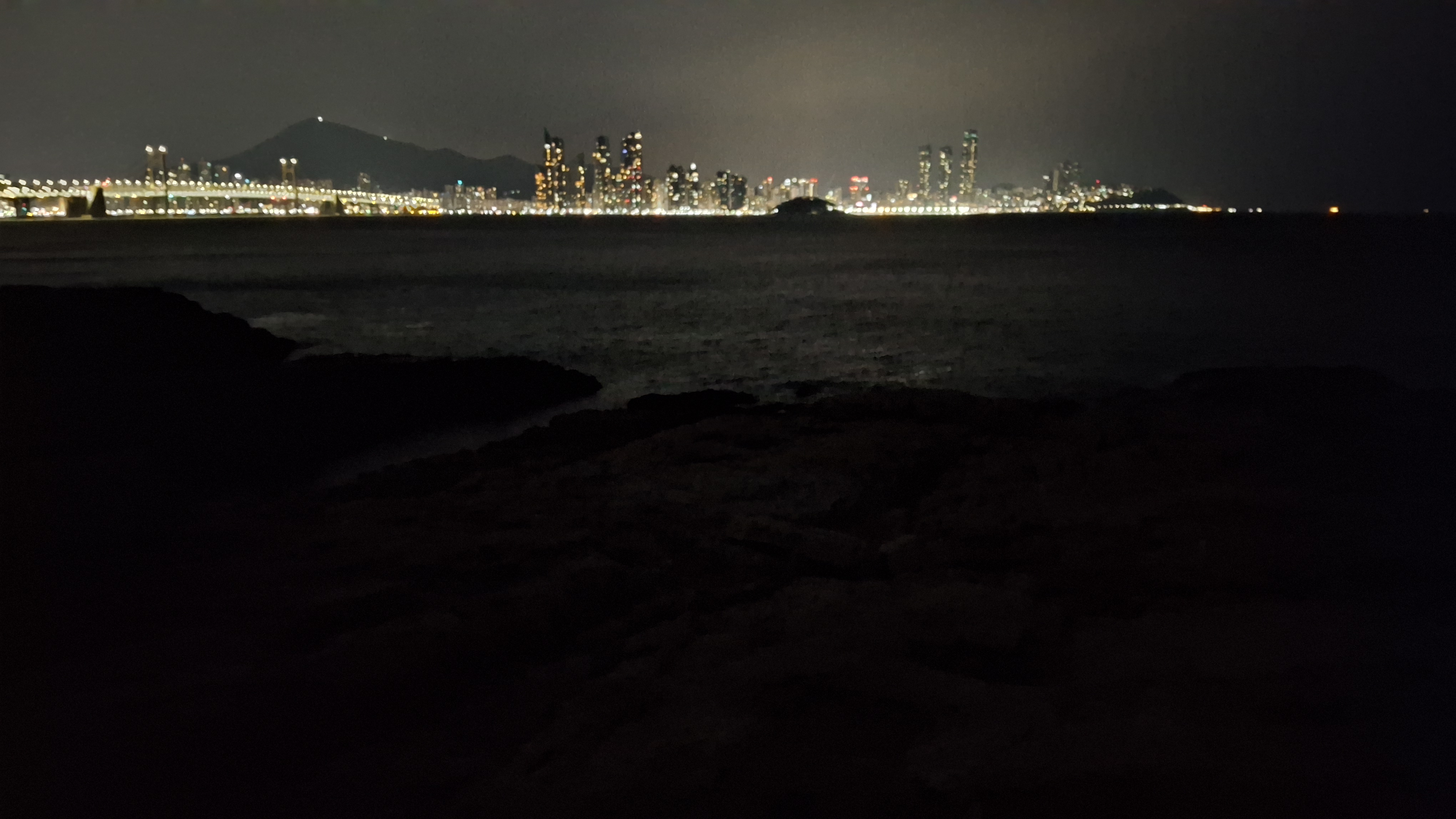 바다가 보이게 찍었은나 너무 어두워 바다는 보이지도 않습니다