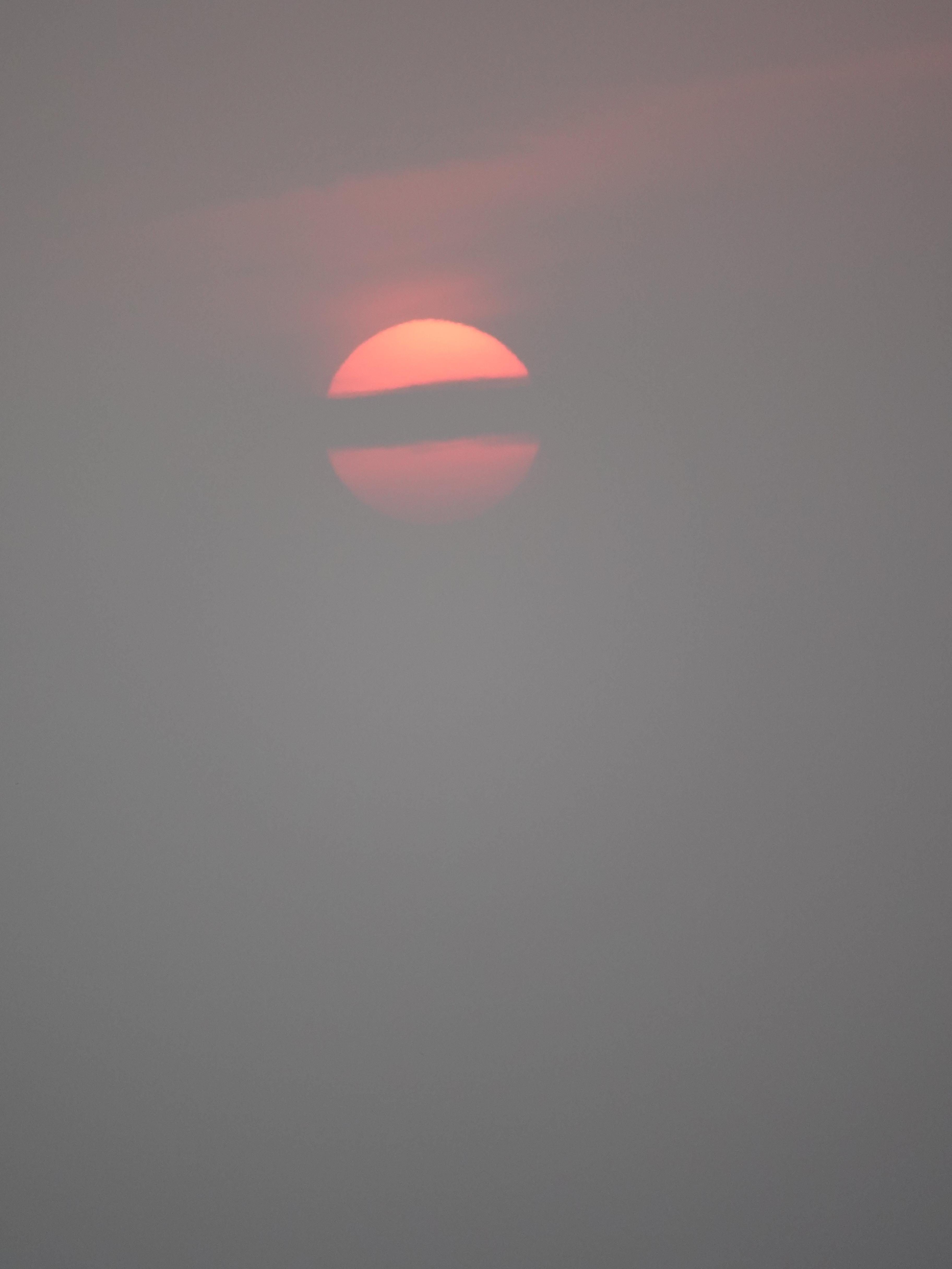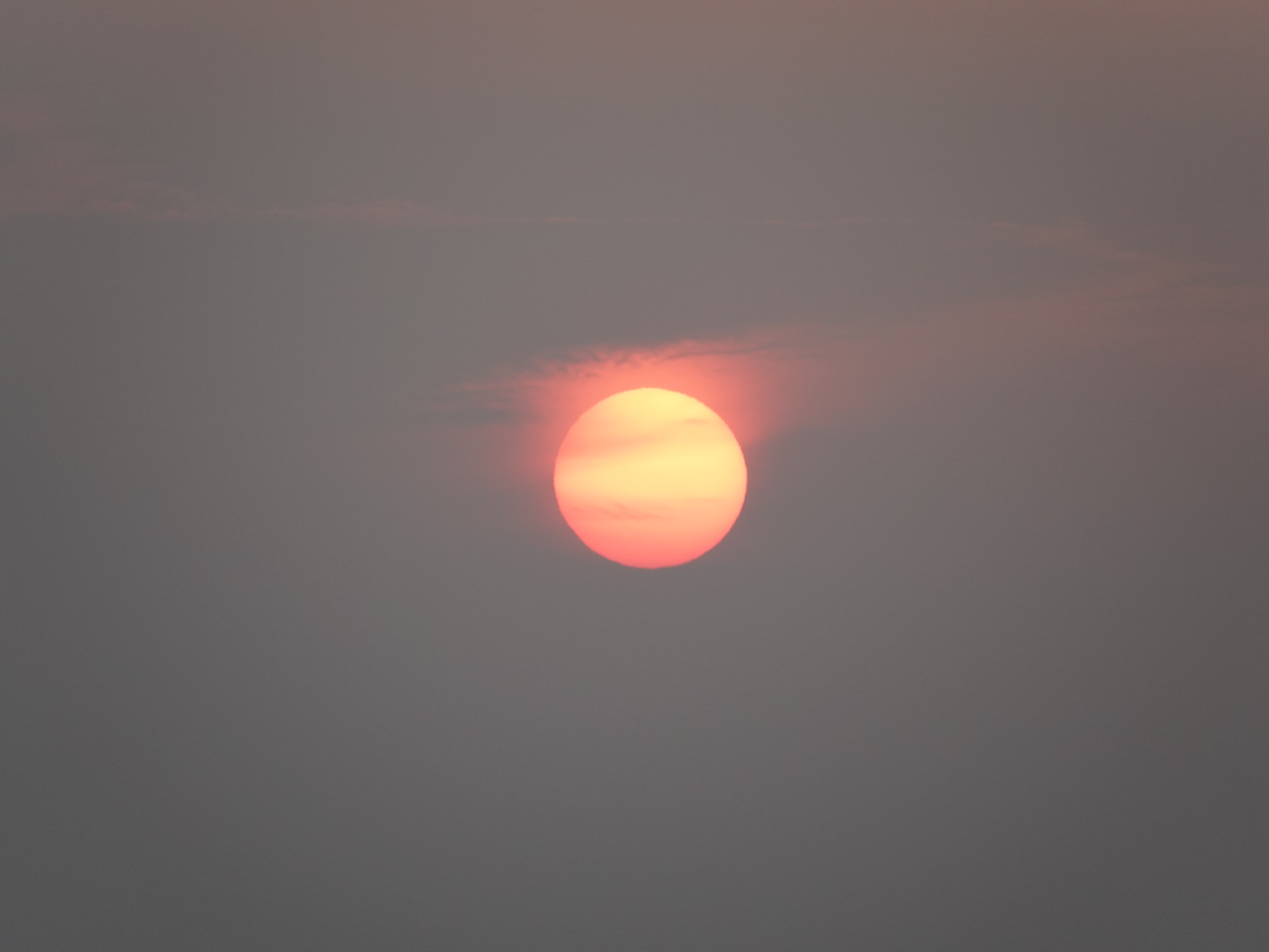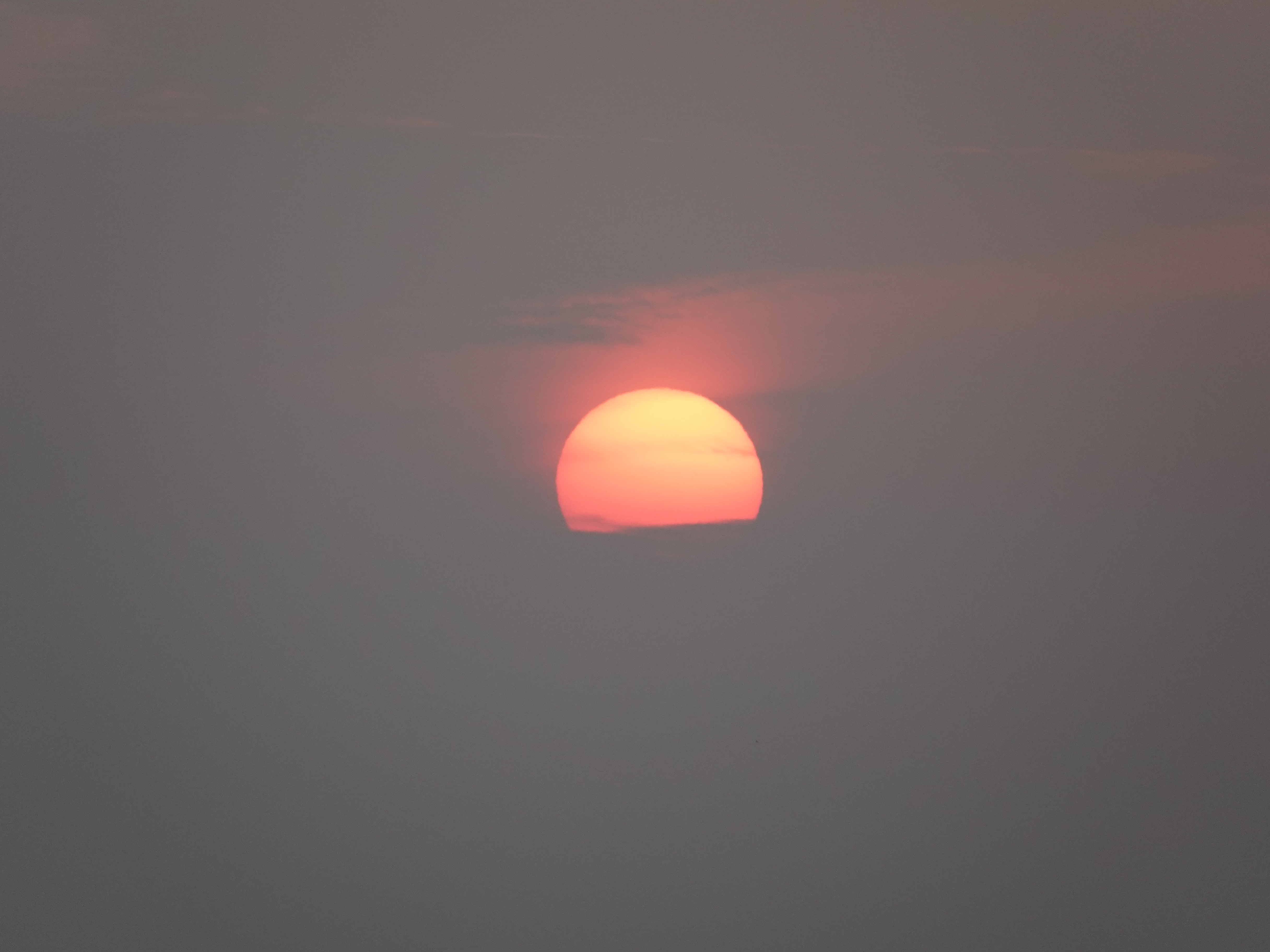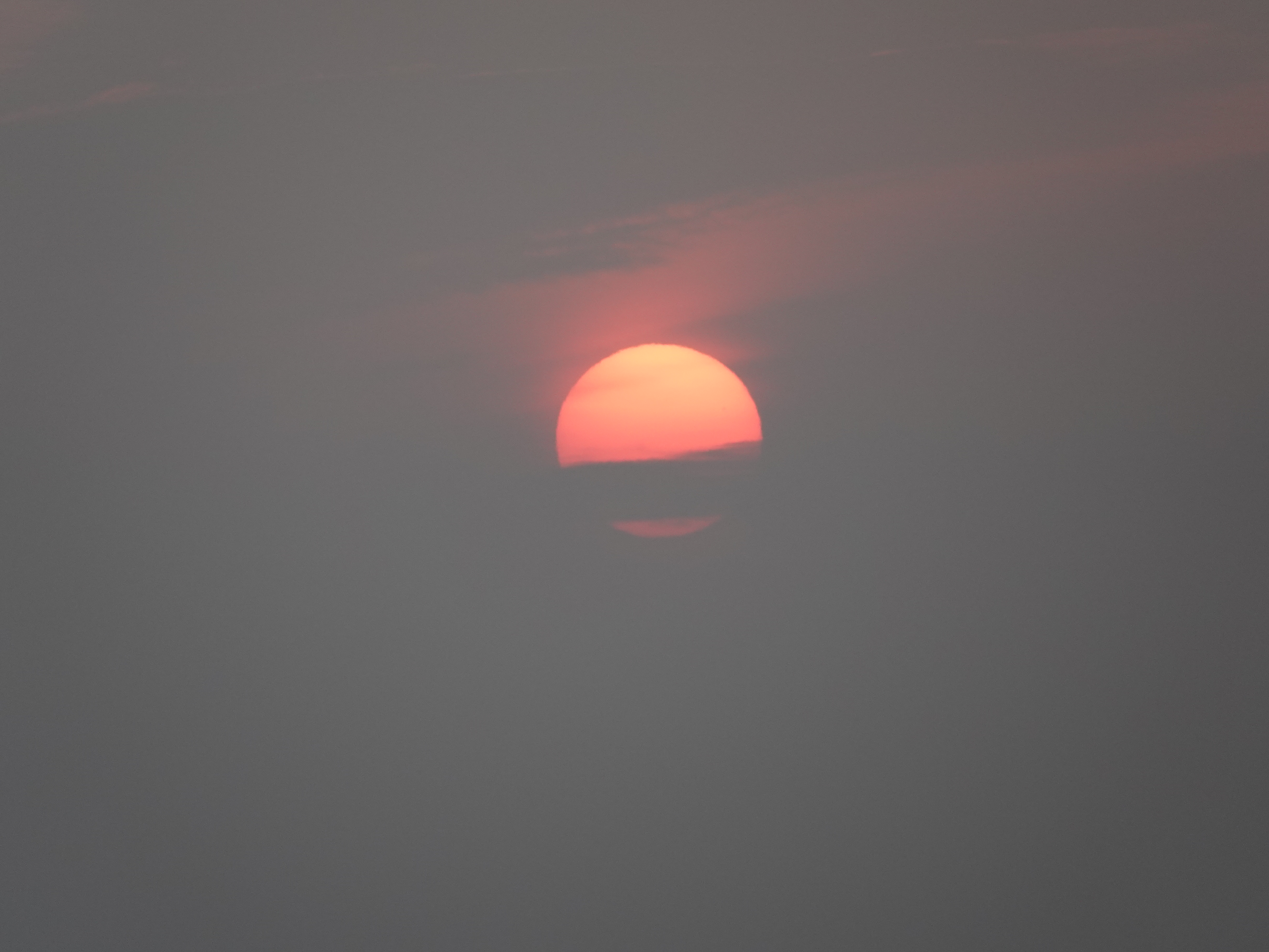 일출 시간 보다 약 10여분 늦게 구름 중간에서 구름을 뚫고 나오느라 띠를 두르고 얼굴을 내 밀기 시작 하였습니다