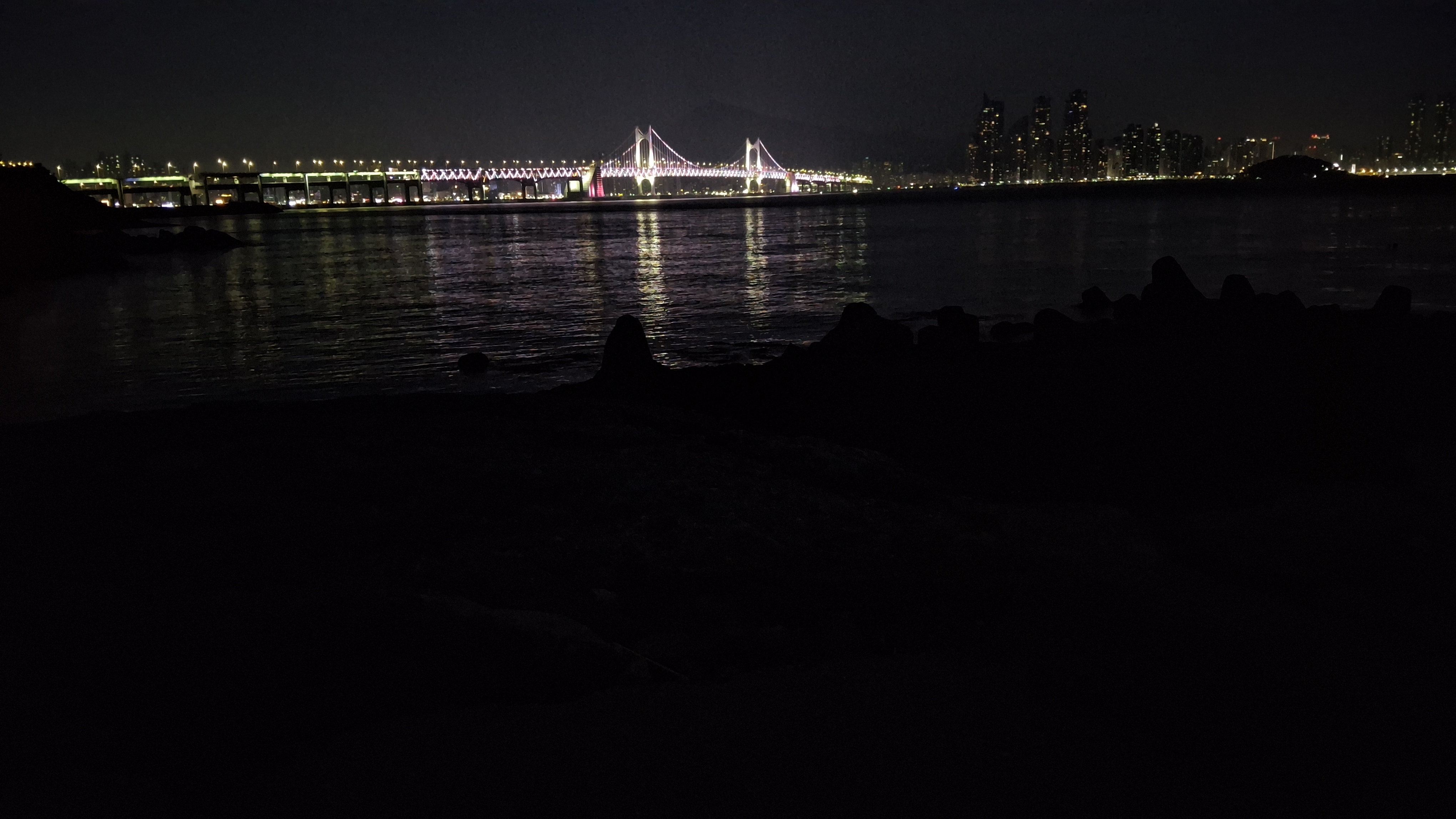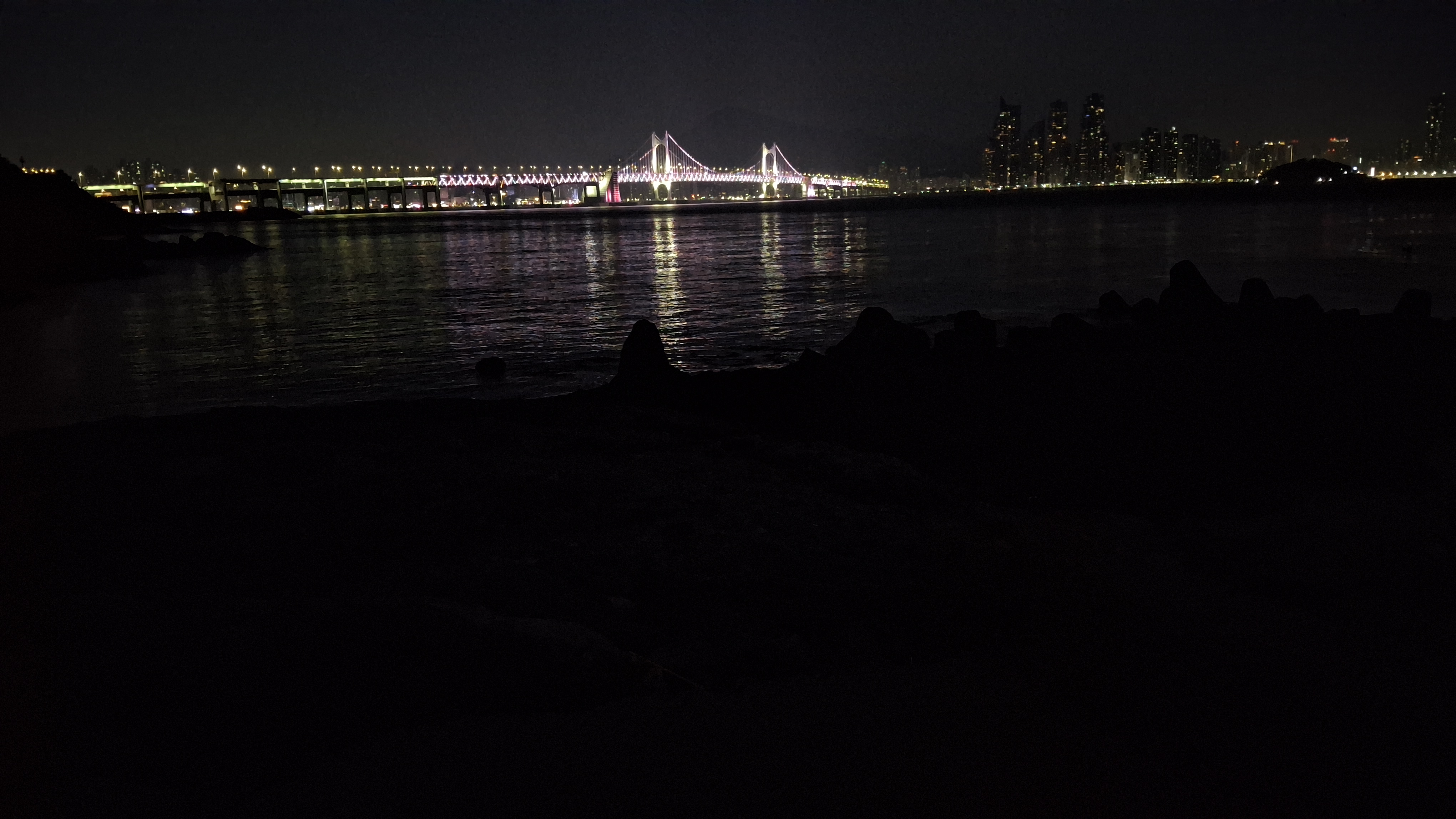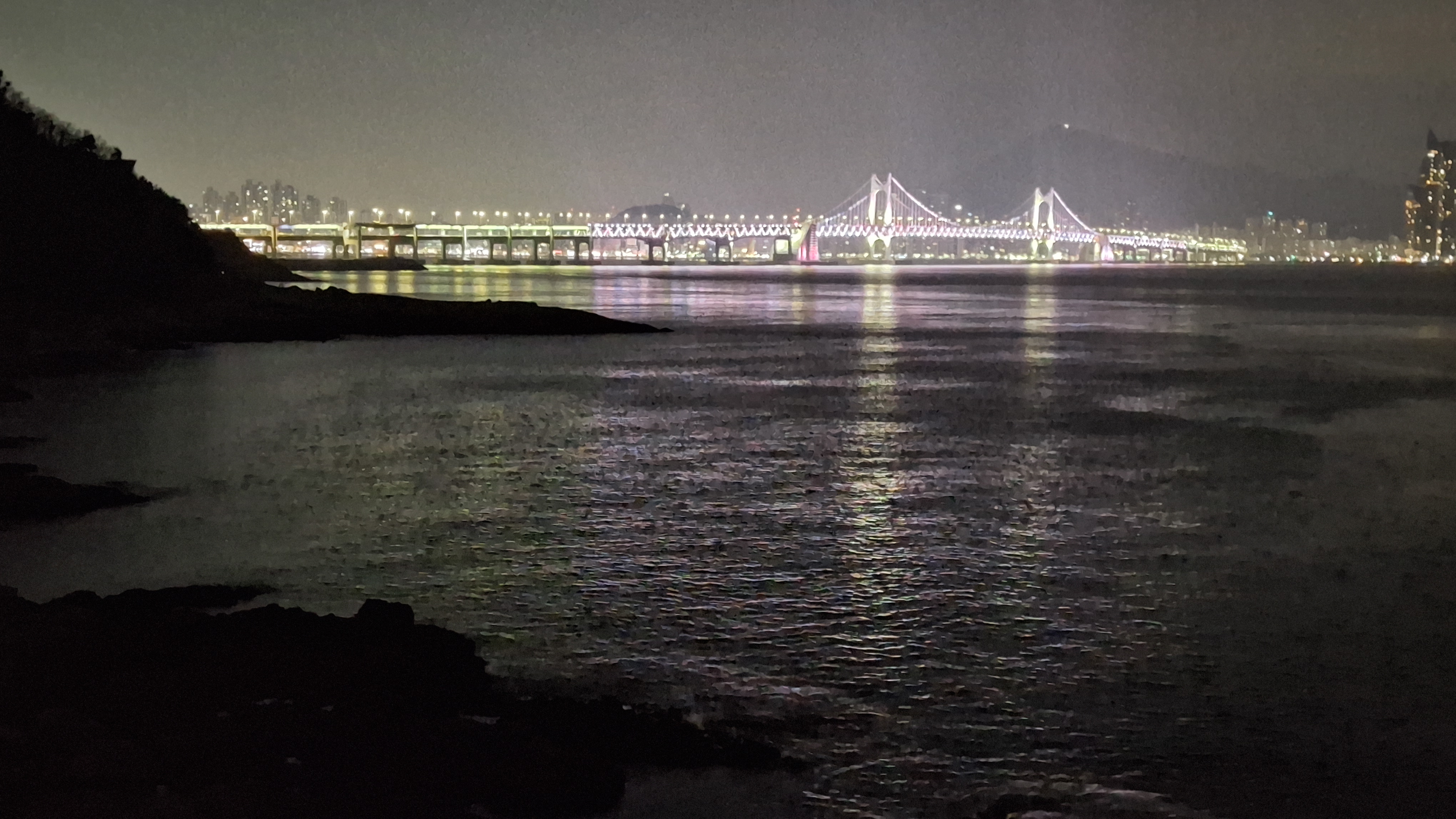 * 광안대교에 총 전년색의 물을 겨자 바다에 반영이 일어 납니다