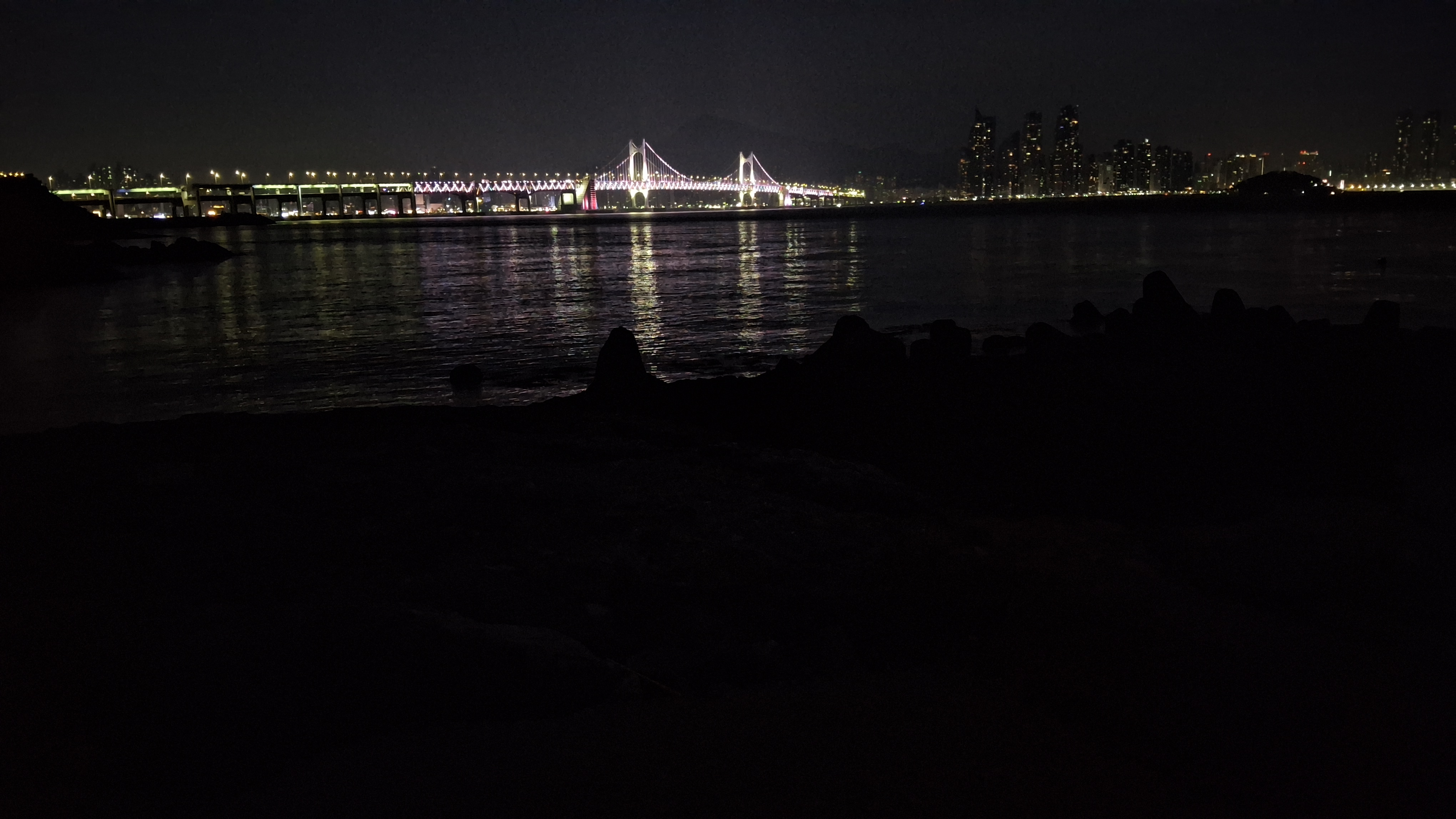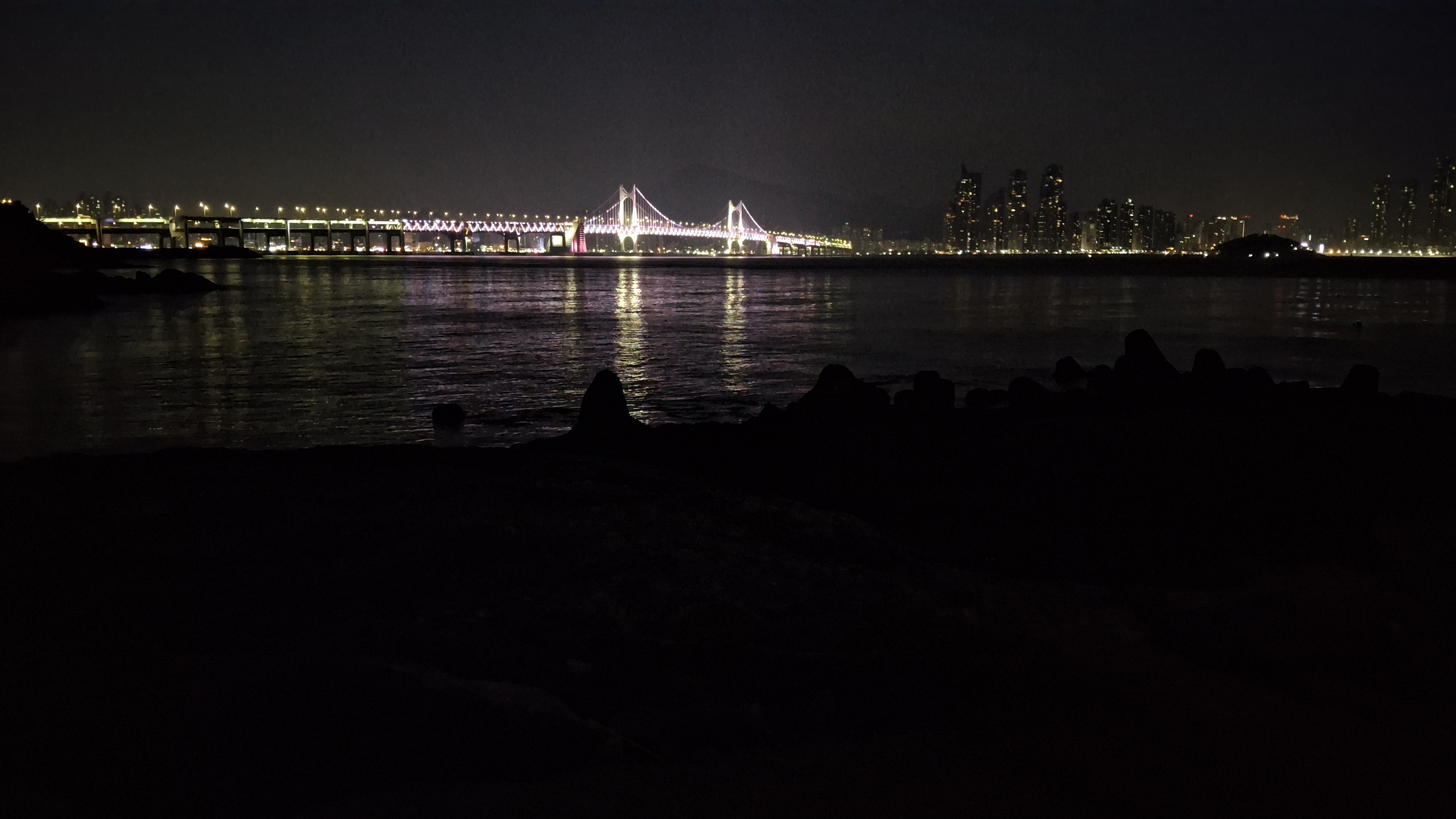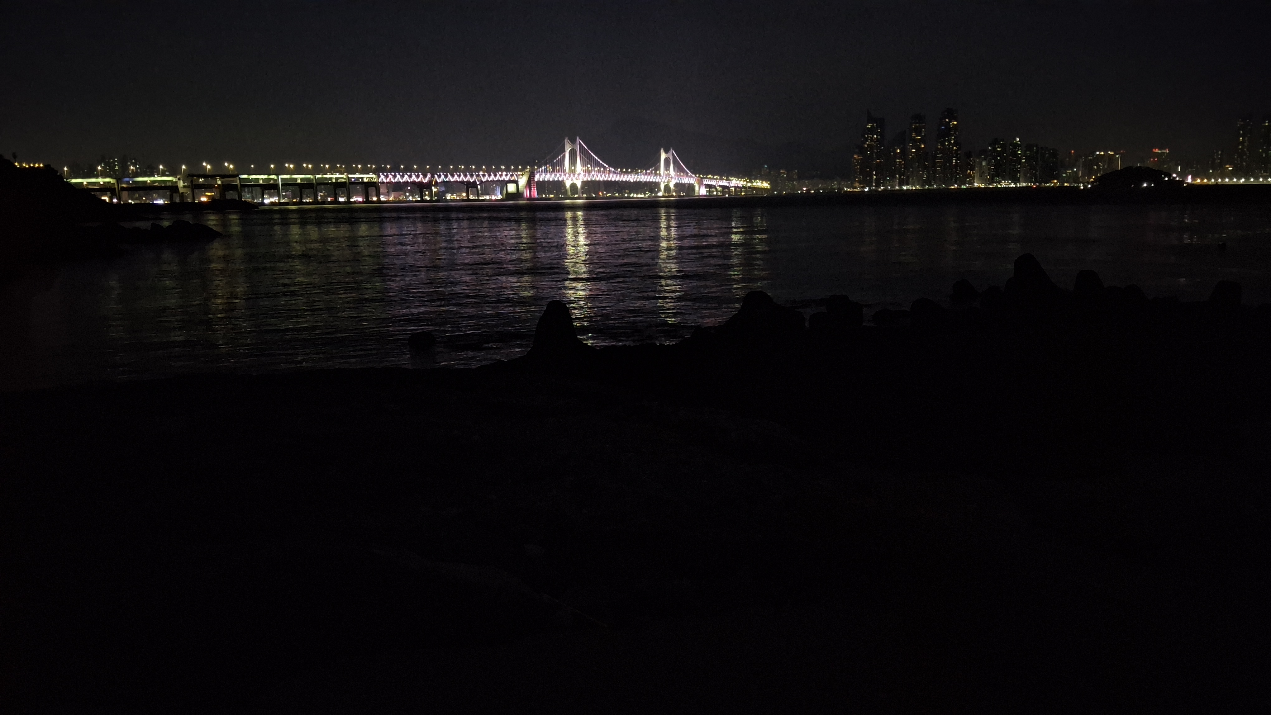 * 광안대교에 총 전년색의 물을 겨자 바다에 반영이 일어 납니다