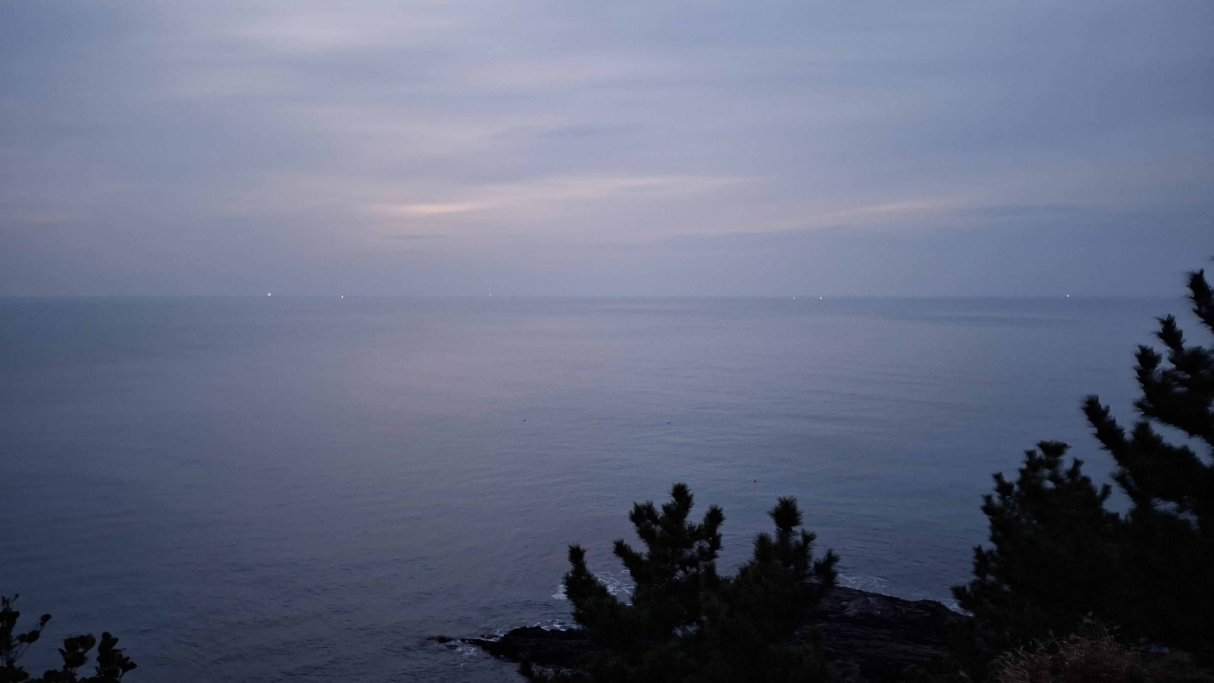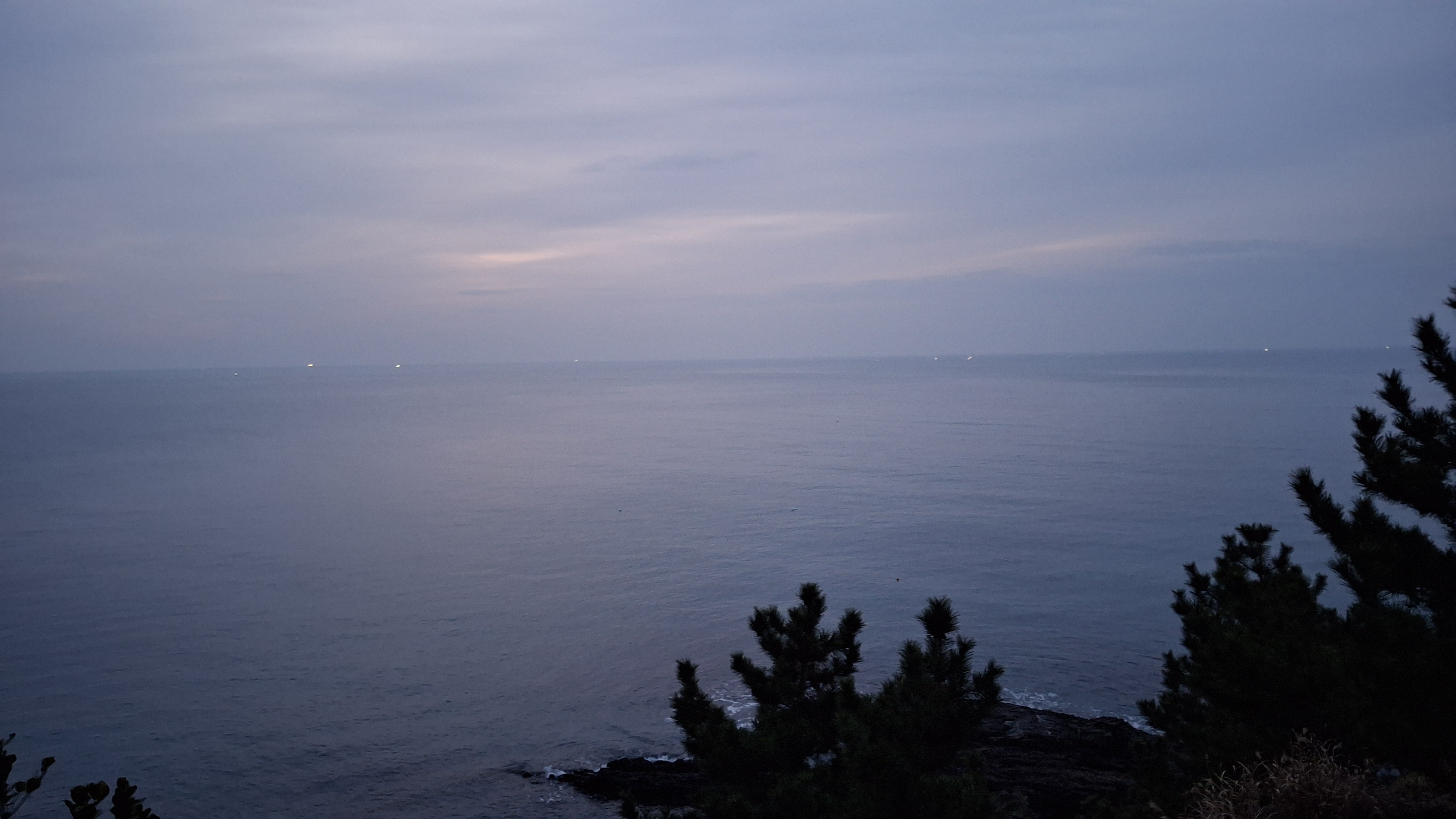 하늘은 흐리고 바닷물은 잔잔 합니다